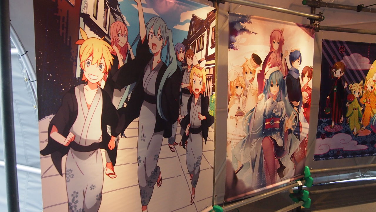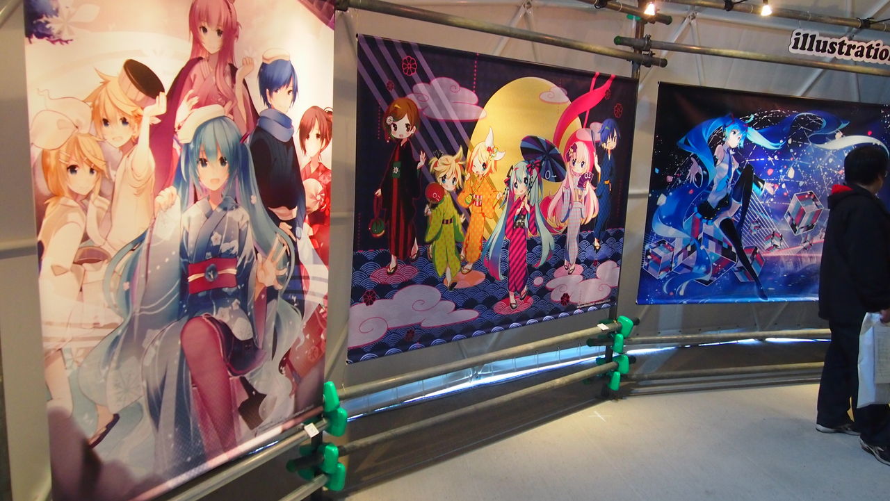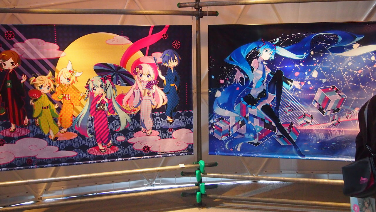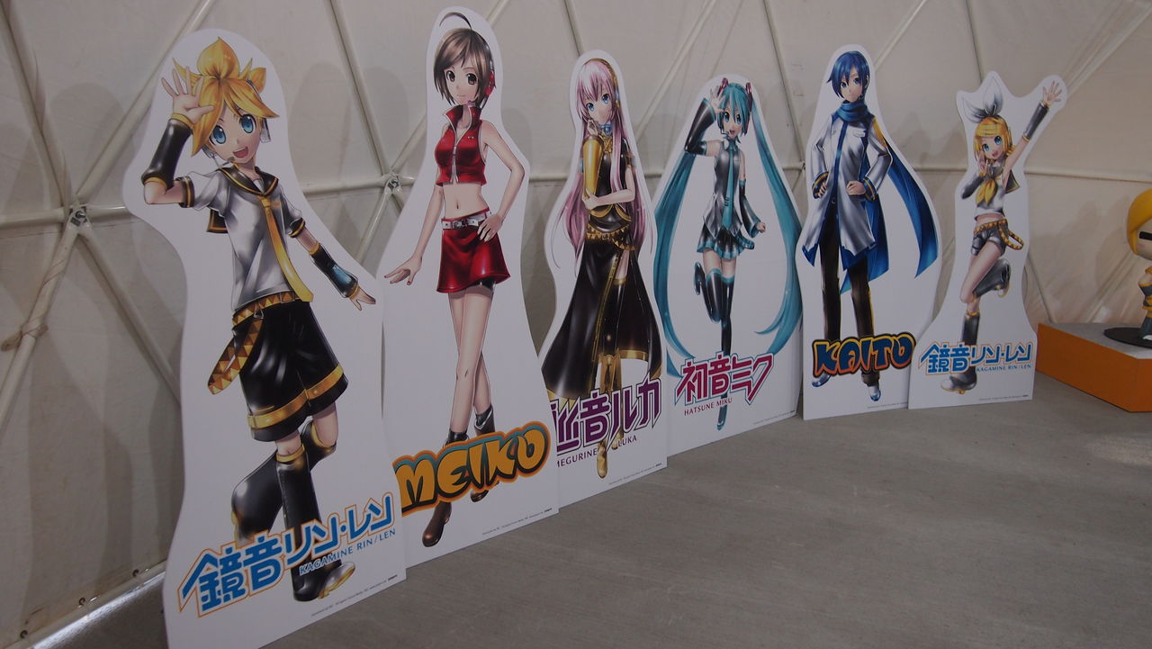 物販ドームではボカロ達の等身大パネルや人形が来場者をお出迎え。