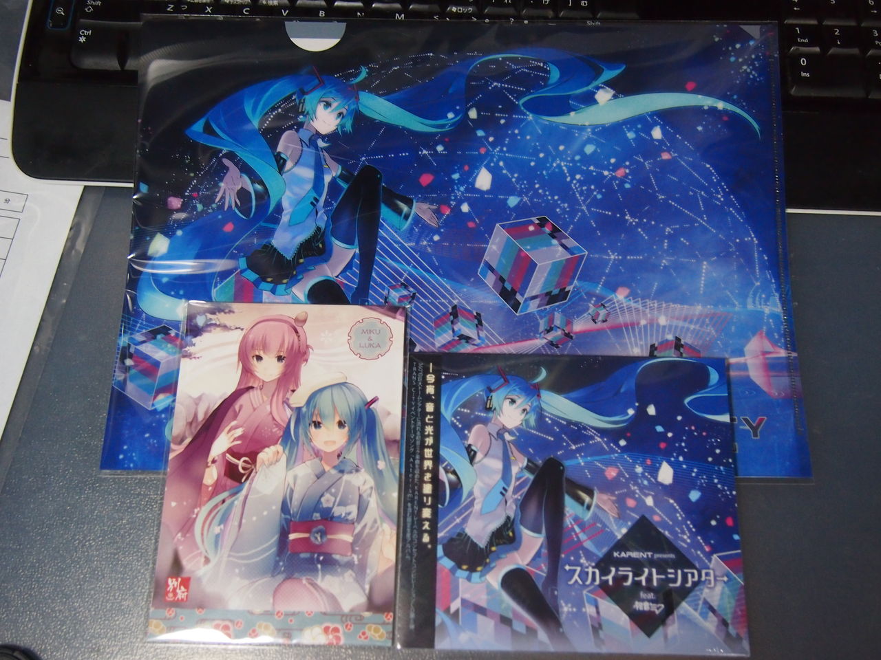 物販で購入したもの。クリアファイル、ポストカード、スカイライトシアターのCD。
