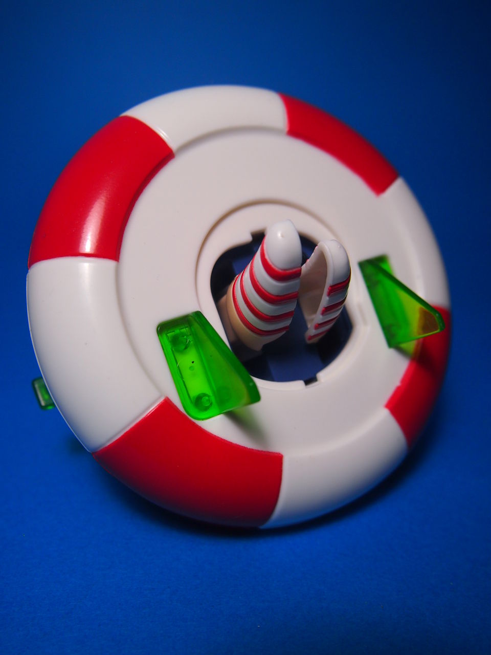 裏はこんな感じ。ゼンマイを作動させると足が前後に動きます。補助パーズで立たせているので、歩かせる場所の表面は多少滑りやすいほうがいいかも?