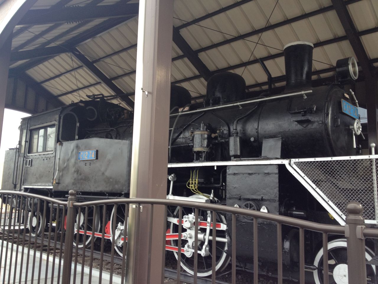 ホテルの前の中央図書館には蒸気機関車が静態保存されてました。国鉄C12形蒸気機関車。C12形は国産のタンク式蒸気機関車です。中津川機関区に所属していた車両です。