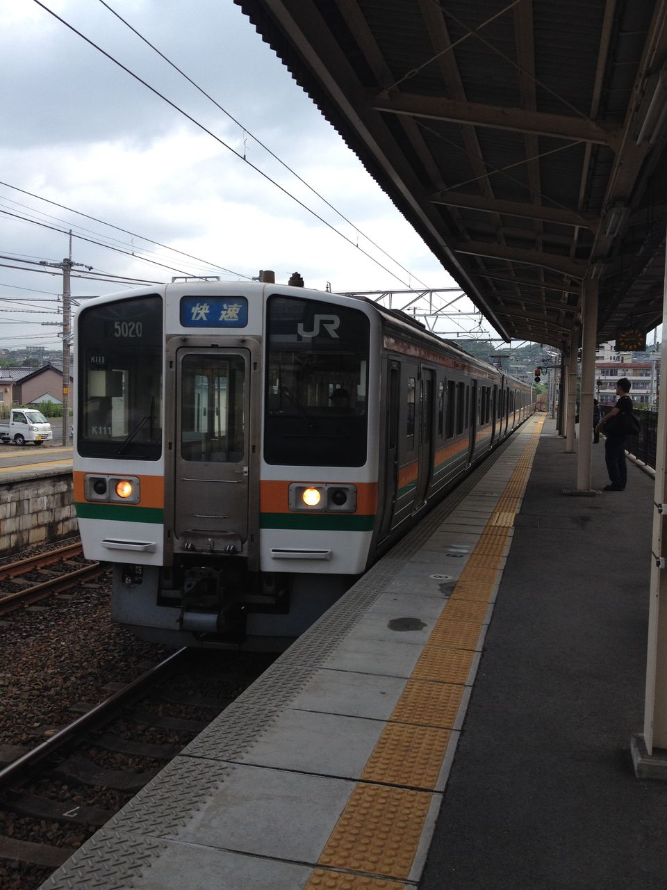 それでは名古屋へ向かって出発しましょう。8時47分発の名古屋行き快速に乗ります。この区間は残念ながらロングシートです。