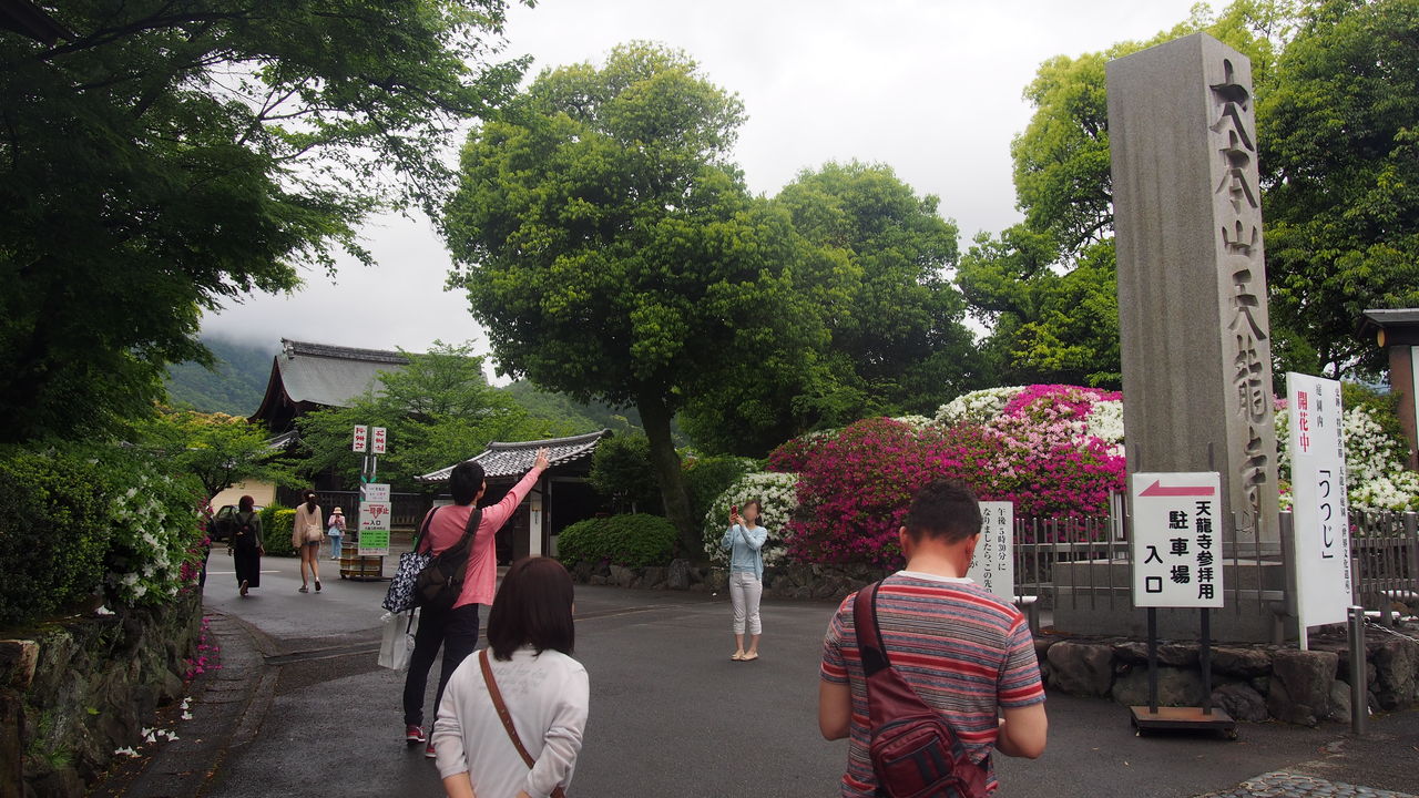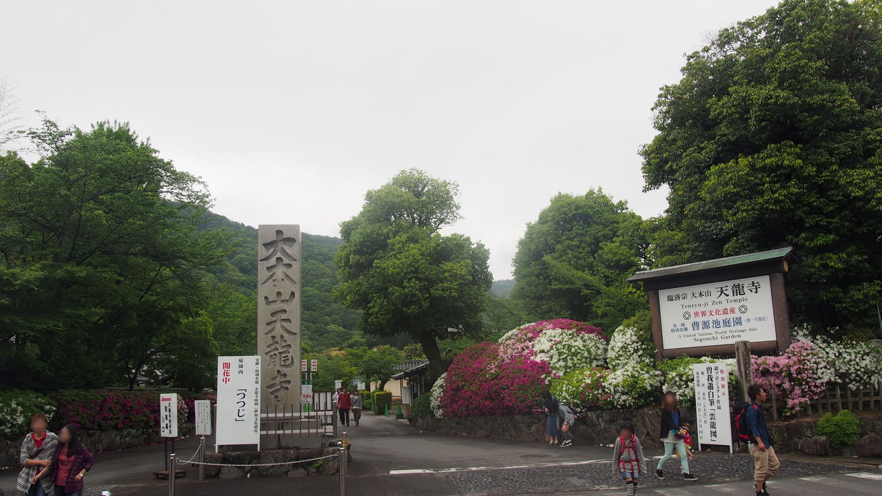 フフフ怖いか?的なお寺だ!!…天龍寺。足利尊氏が創建した禅寺で、世界遺産に登録されてる由緒正しいお寺です。つつじが見頃でした。