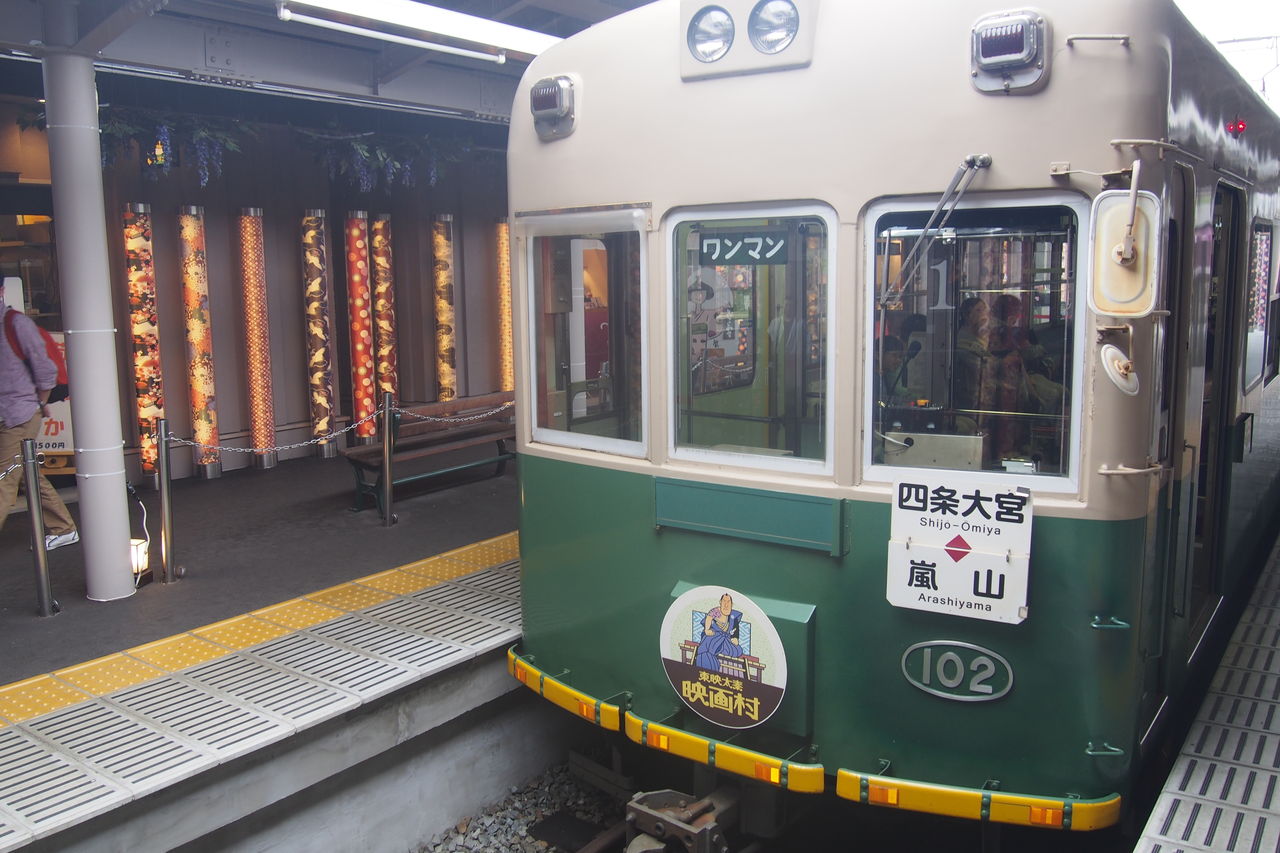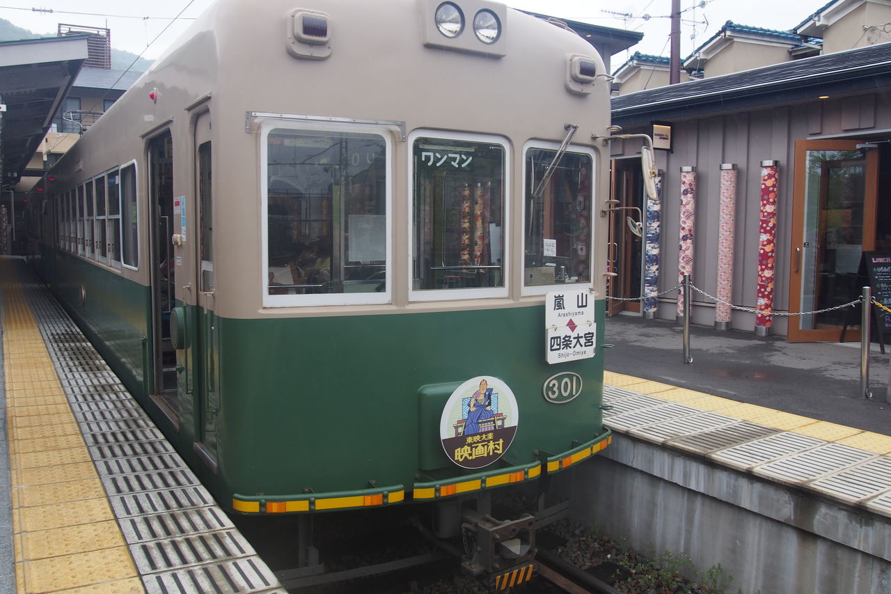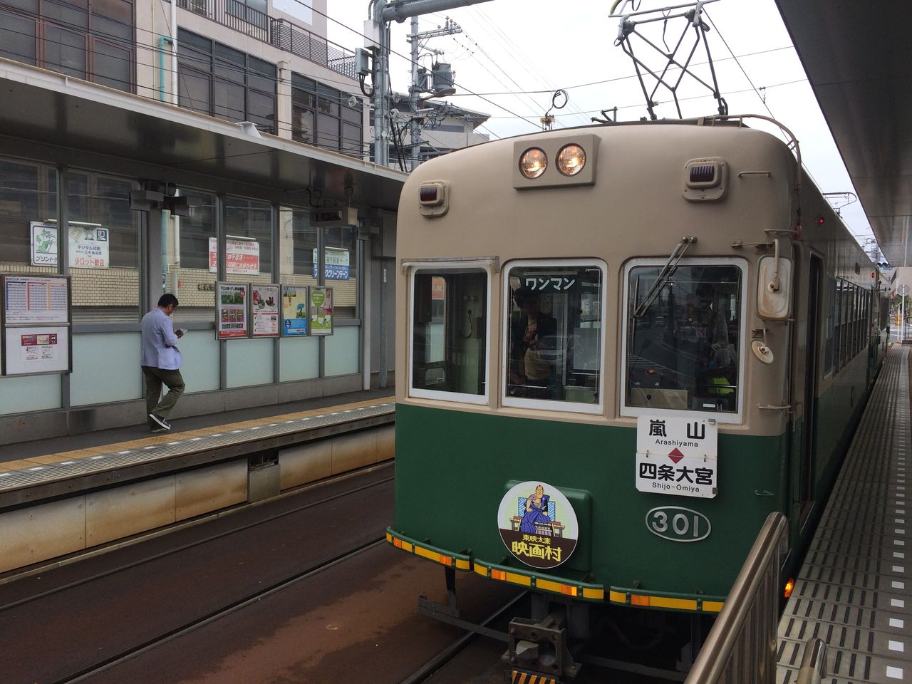 駅に戻って、嵐電に乗って嵐電天神川まで戻ります。