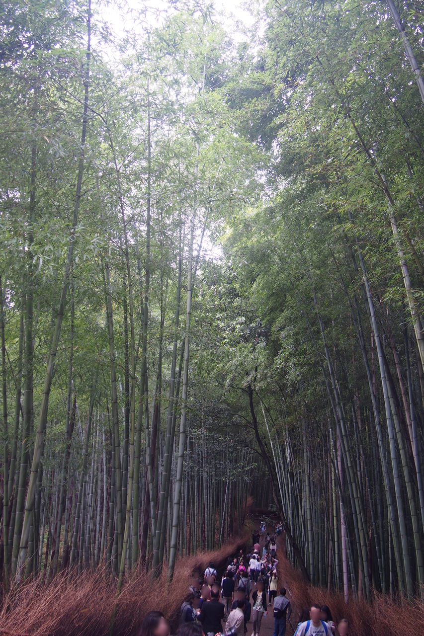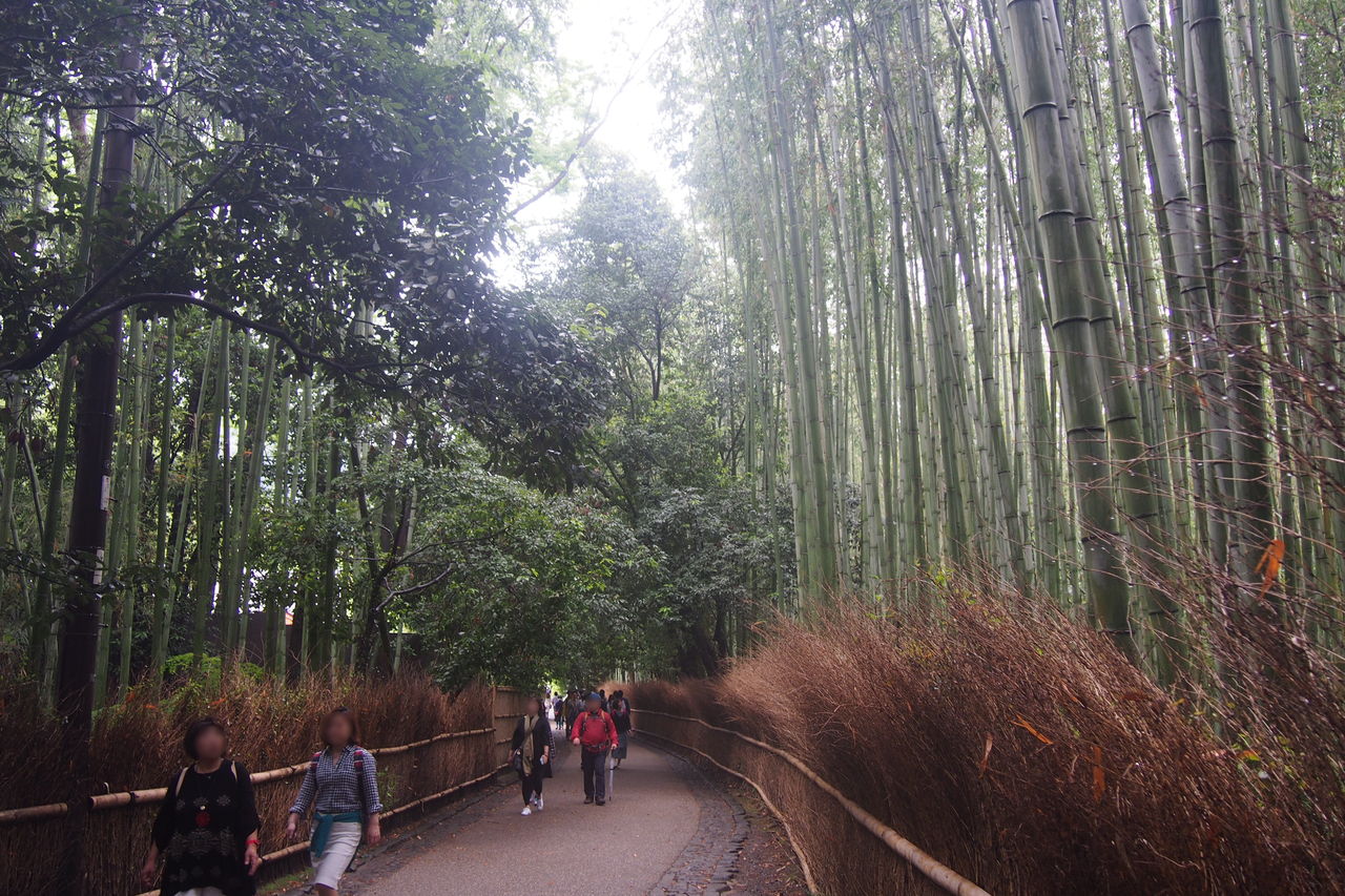 竹林の小径に到着しました。ここには初めて来ました。なにかのテレビCMとかで使われてましたよね。それを見て一度来てみたいと思ってました。思っていたより広い道です。なんかテレビとかで見た感じとは違いますね。