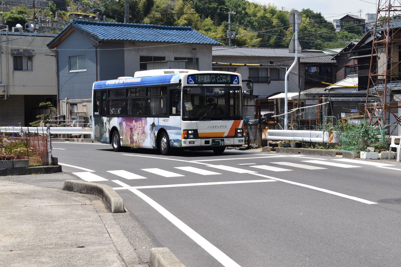 まずは、「下津井循環バス ことはい号」に使われてる中型バスから。