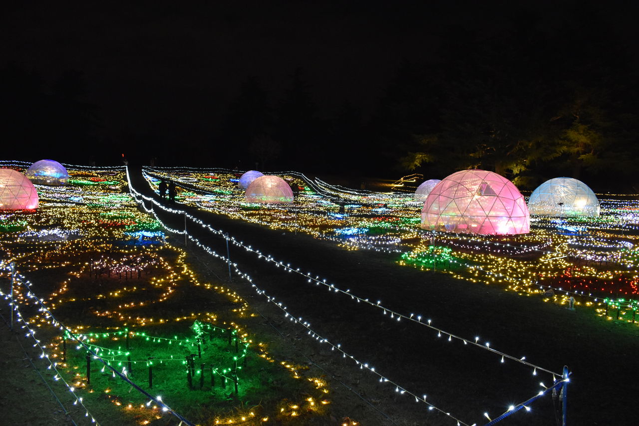 ふれあい広場のイルミネーション。ドーム状のモニュメントが特長ですかね。