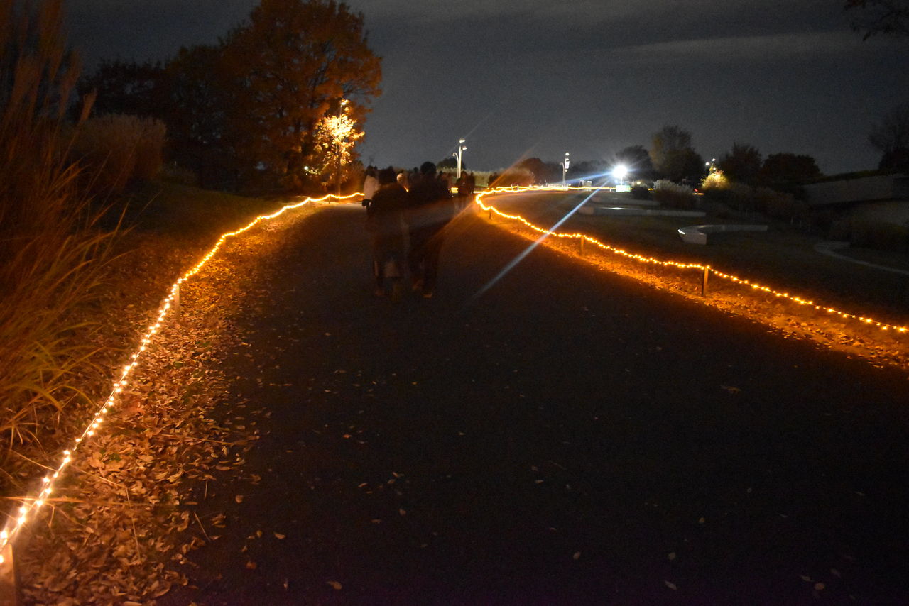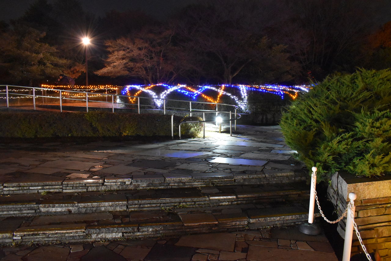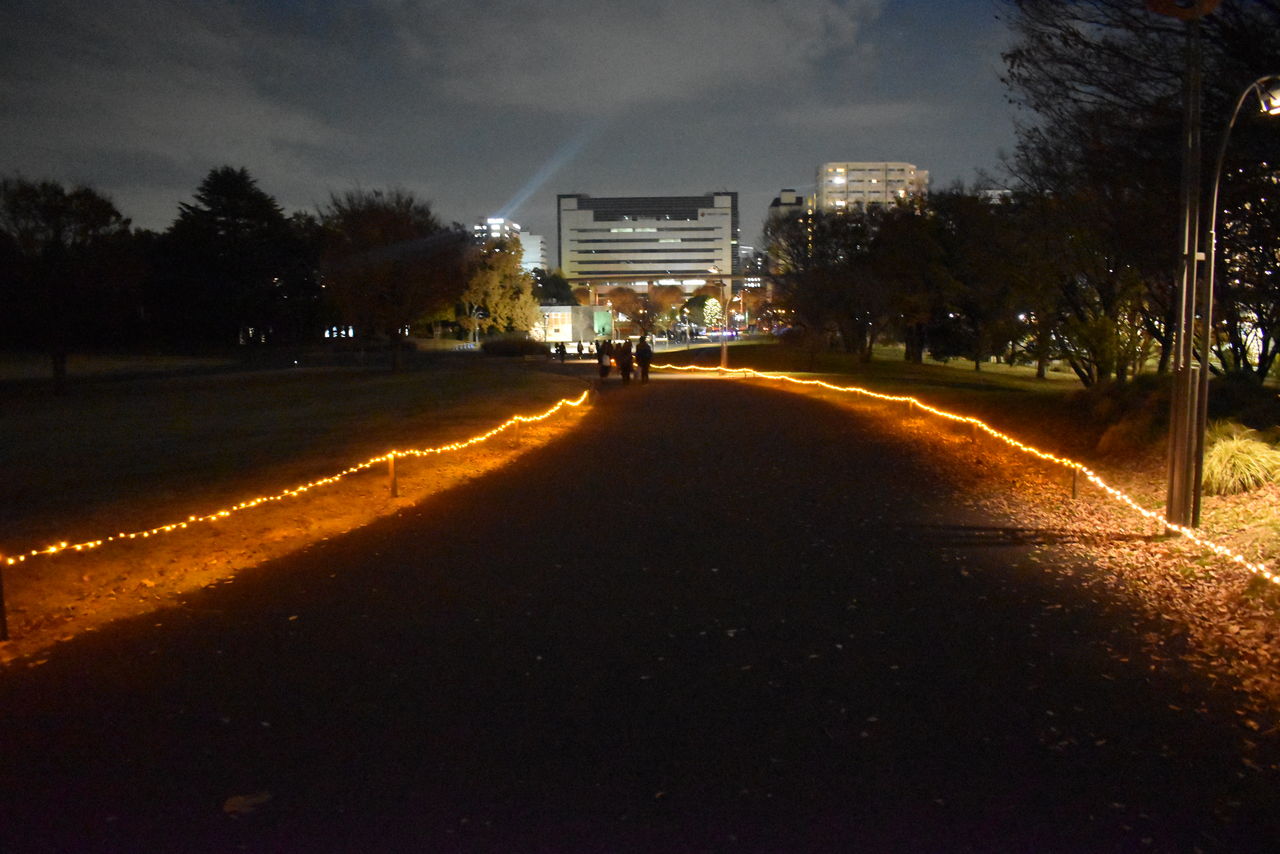あけぼの口、花みどり文化センターのところの坂。遊歩道に添って設置されたイルミネーションに期待が高まります。