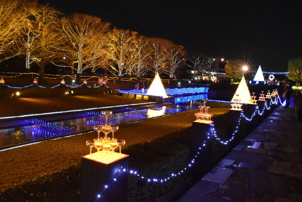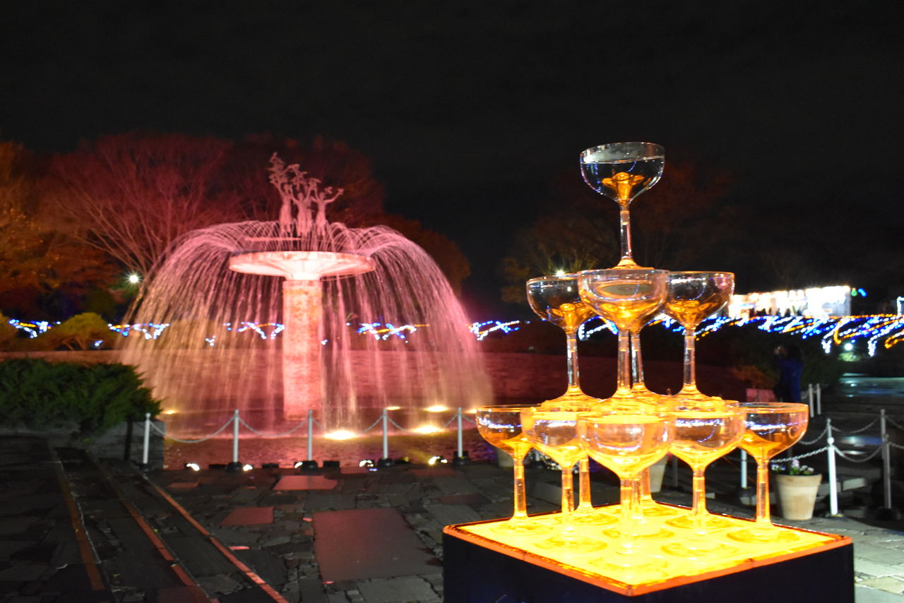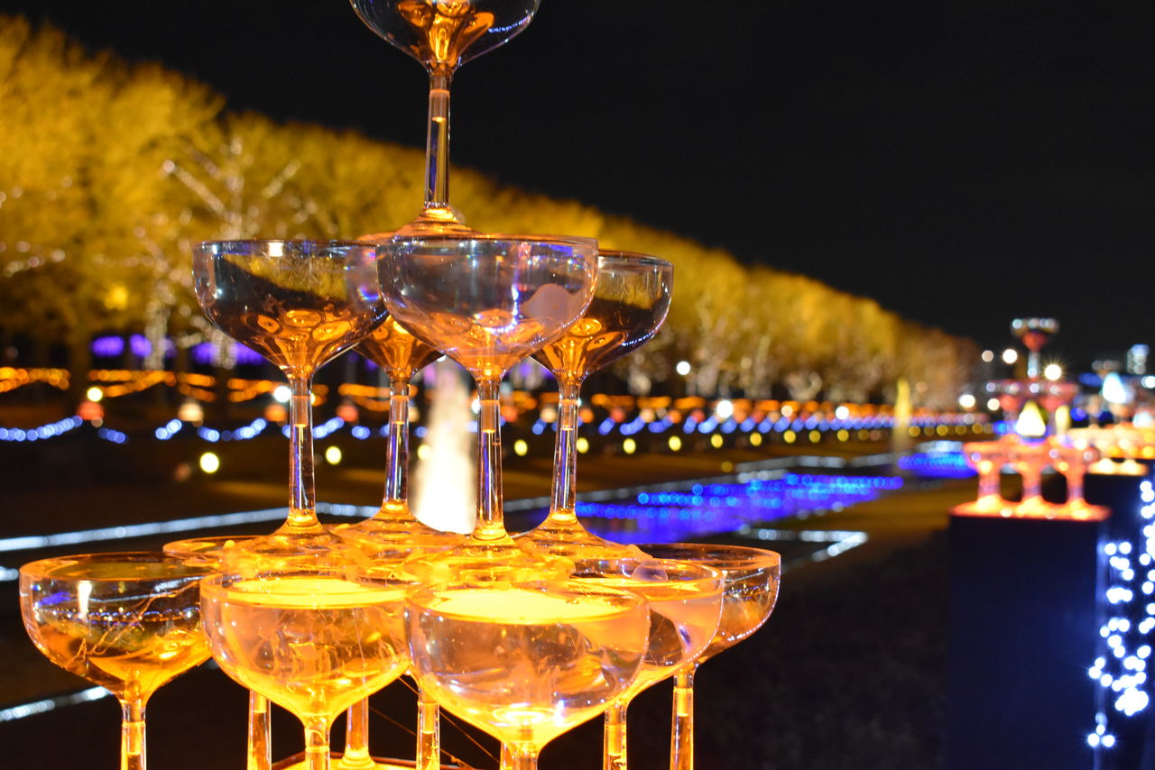 イルミネーションを背景にミニシャンパングラスタワーを撮るといい感じ!