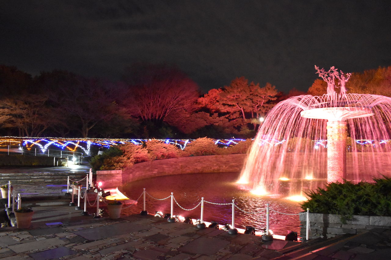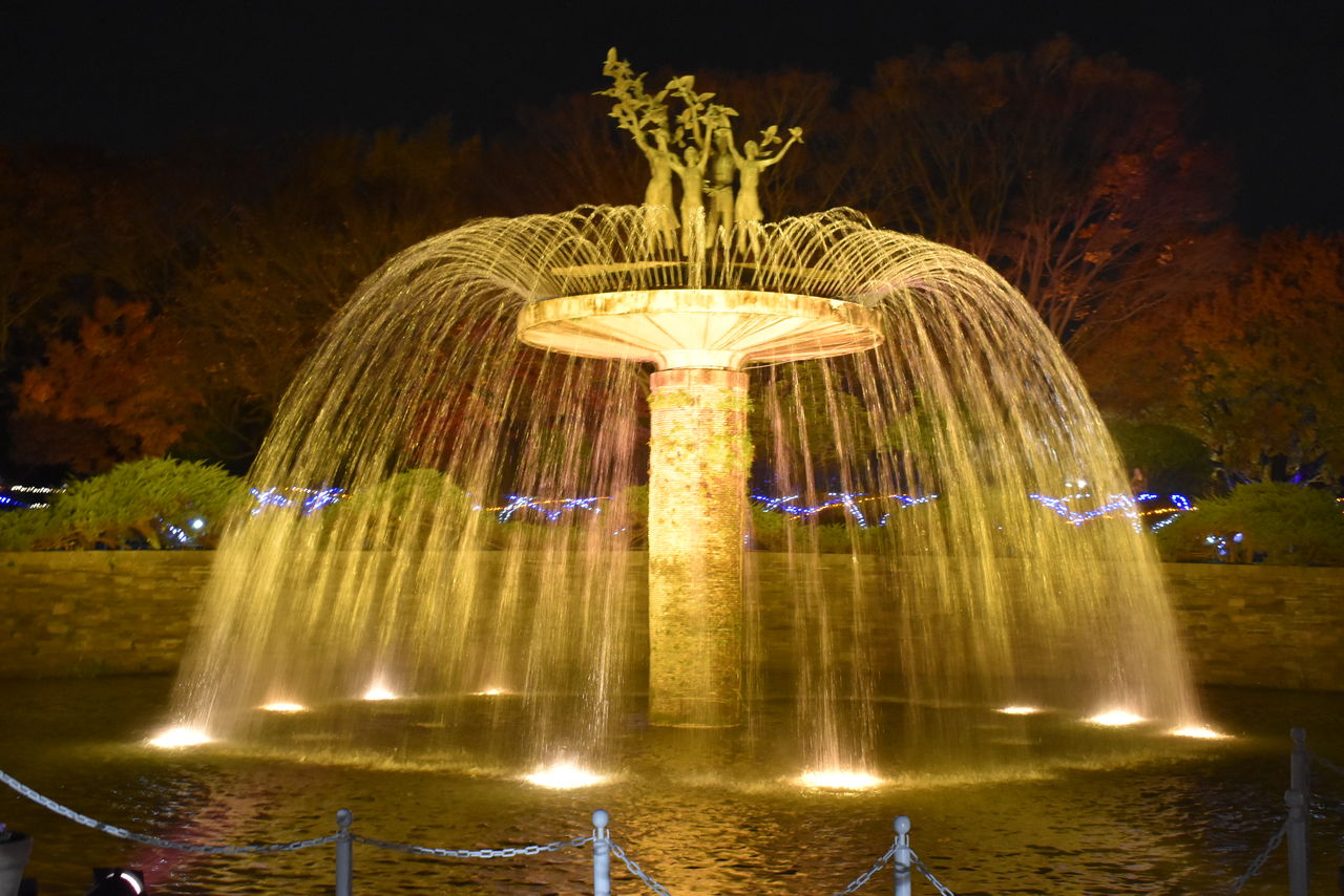 噴水もカラフルに。