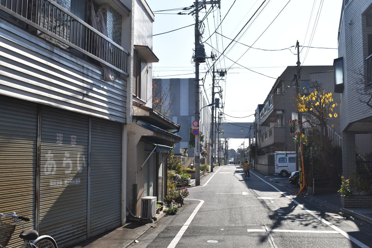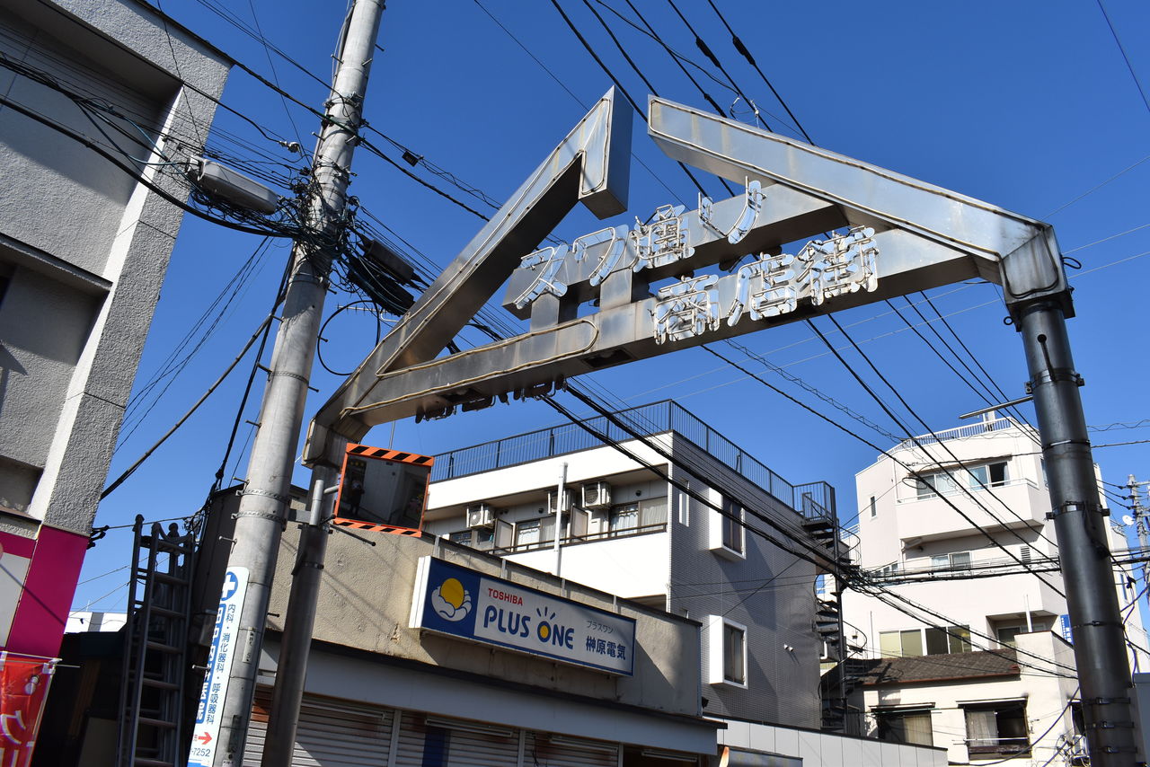 遠征前にGoogleマップのストリートビューで探していたのですが、どう見ても周囲の建物の形が合わない。でも、この景色何処かで見た気がしたのですよ。それは前回、諏訪商店街のカットを撮りに行ったとき似たような連絡通路があったのを思い出しました。