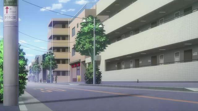 同じく第5話Bパート「おつかいレース」のカットより。アーキテクトがお酢を買ってくる時に登場した景色。マンションの形とか微妙に違ってたのでわかりにくかったですね。あと交差点近くなので信号待ちの車がいなくなるタイミングを待たないといけませんでした。