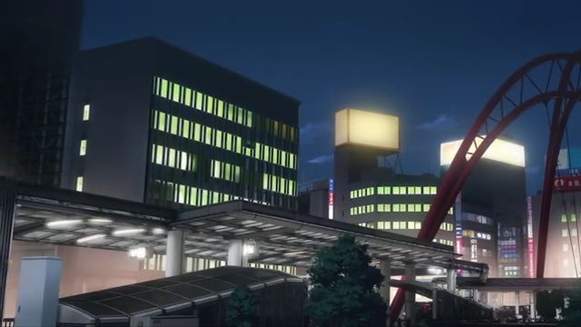 1話Aパート「轟雷」冒頭の立川駅北口のカットより。夜のシーンではありませんが、とりあえず合わせてみました。