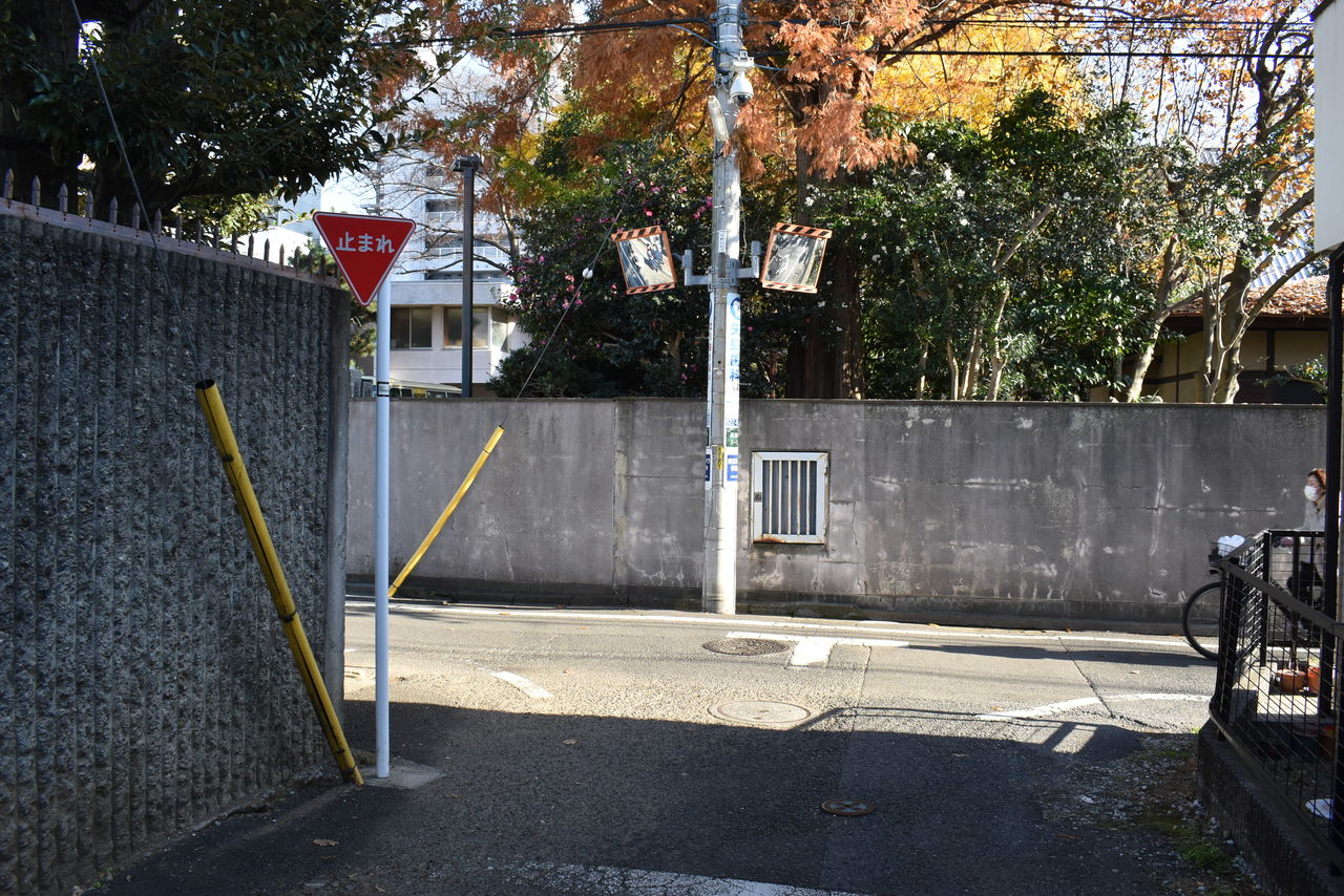 オープニングのカットより。あおちゃんの通学路。立川女子高等学校側の路地でございます。右の壁は立川女子高等学校の塀になります。