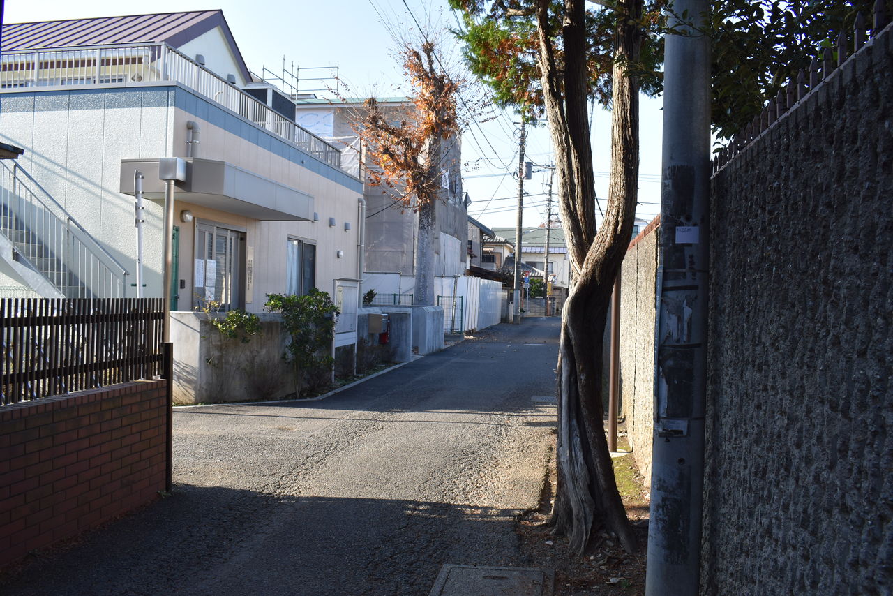 そう、ここは諏訪商店街のゲートのすぐ近くにあるY字路のところから立川小学校と柴崎学習館の間の道を望む場所だったのです。この通路は立川女子高等学校のものではなく、立川小学校と柴崎学習館をつなぐ連絡通路だったのですよ。