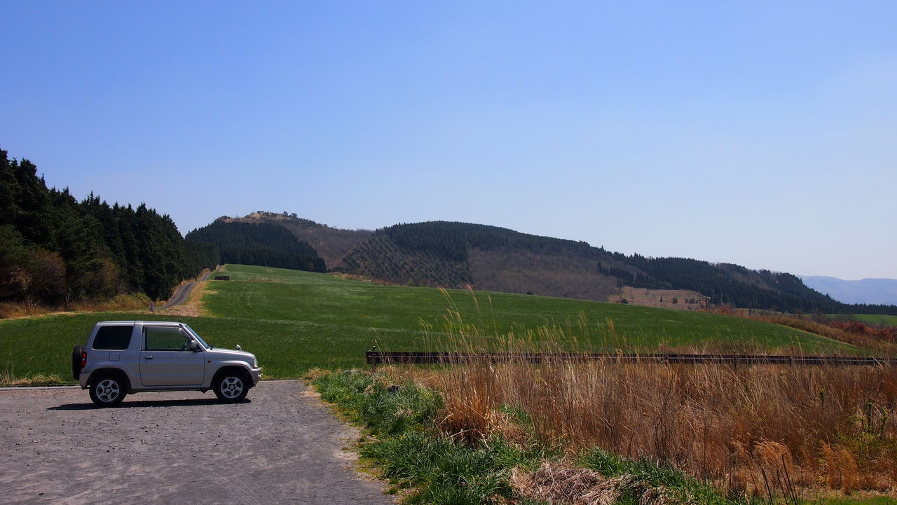 「スカイファームロードひた」から「スカイファームロードわいた」へ抜け、黒川温泉を通り飯田高原へ。そして高台にある「久住高原スカイパークあざみ台」に立ち寄ります。