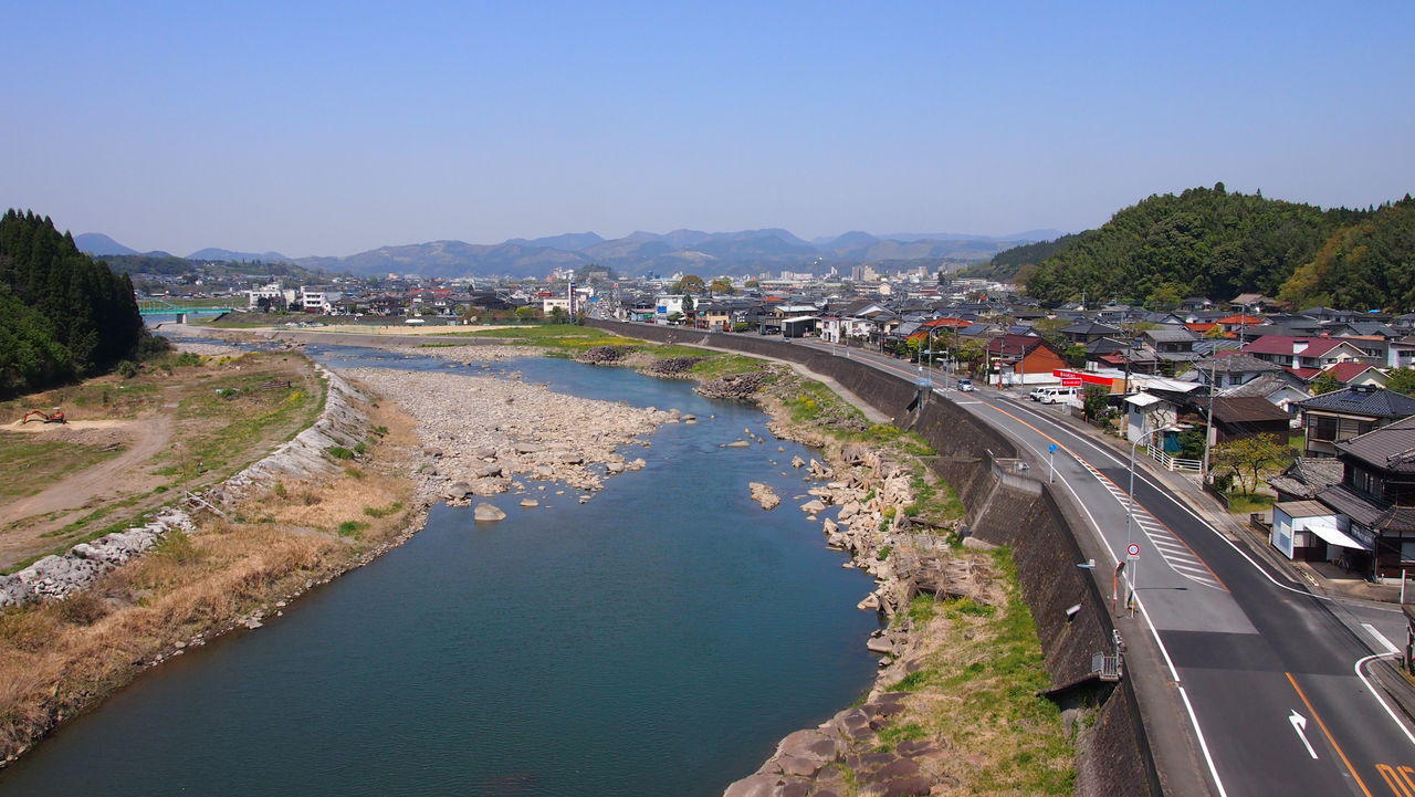 天領大橋から日田市街地方面。下に流れてる川は筑後川水系の玖珠川。