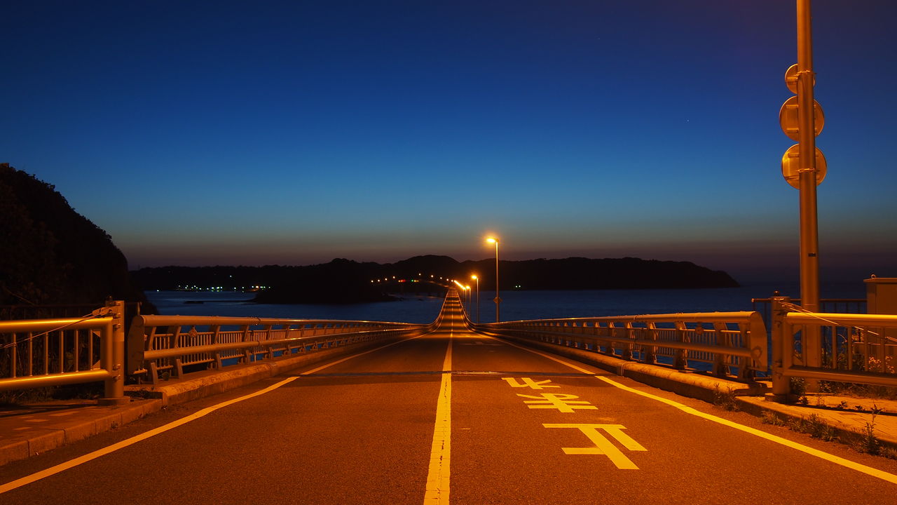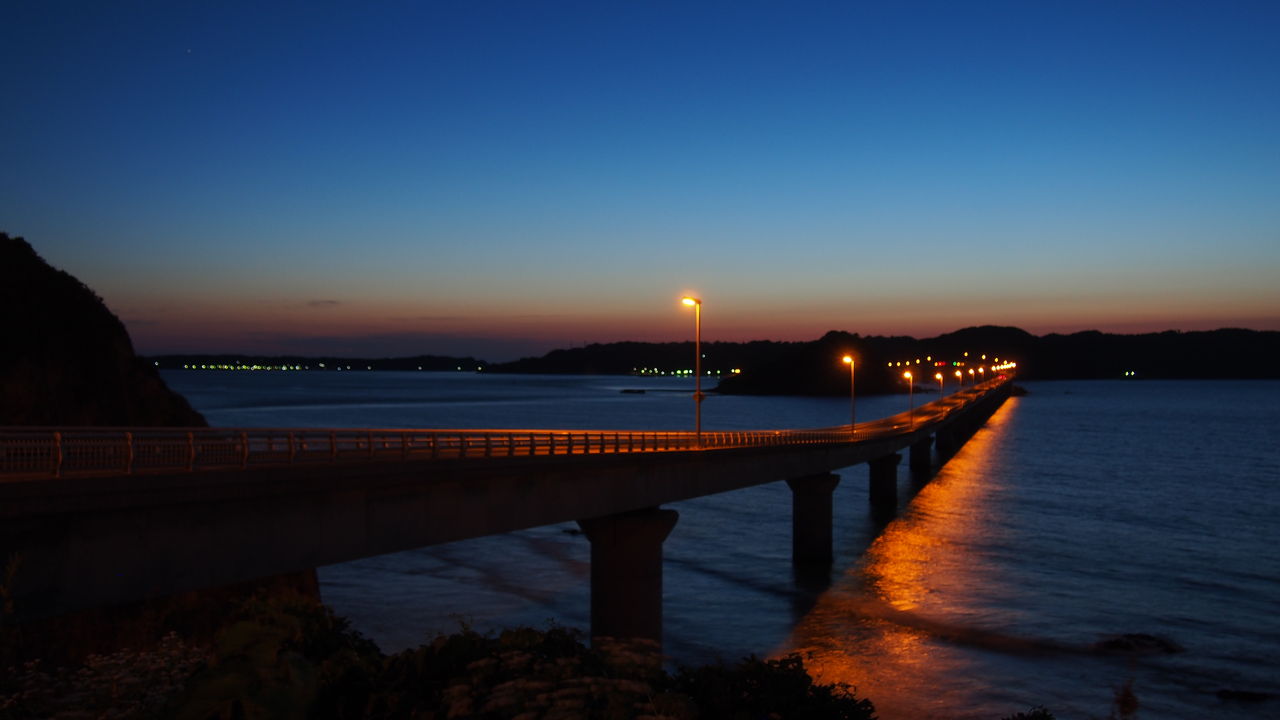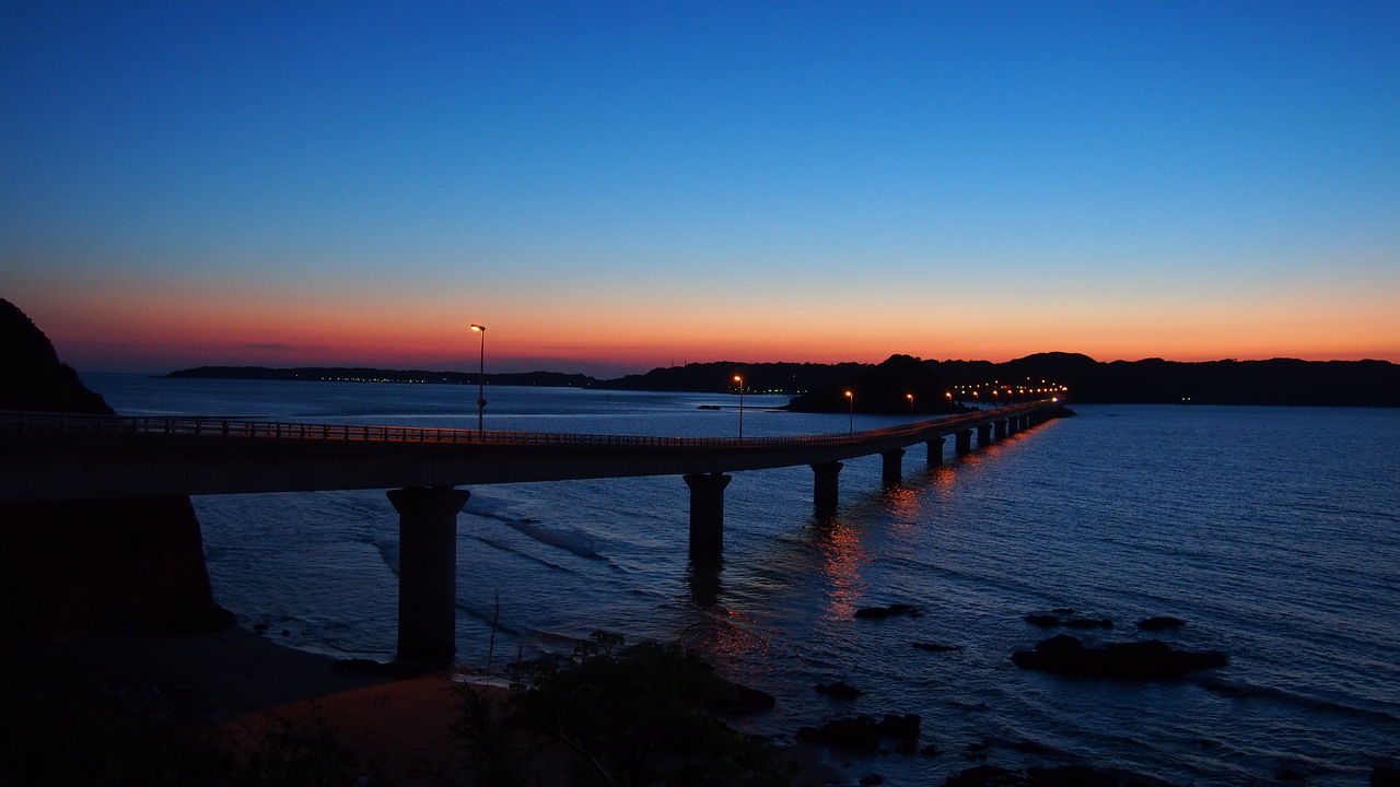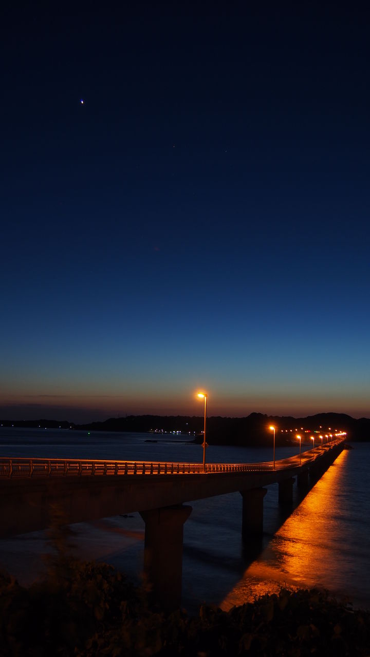 一番星と角島大橋。宵の明星、金星でしょうか?