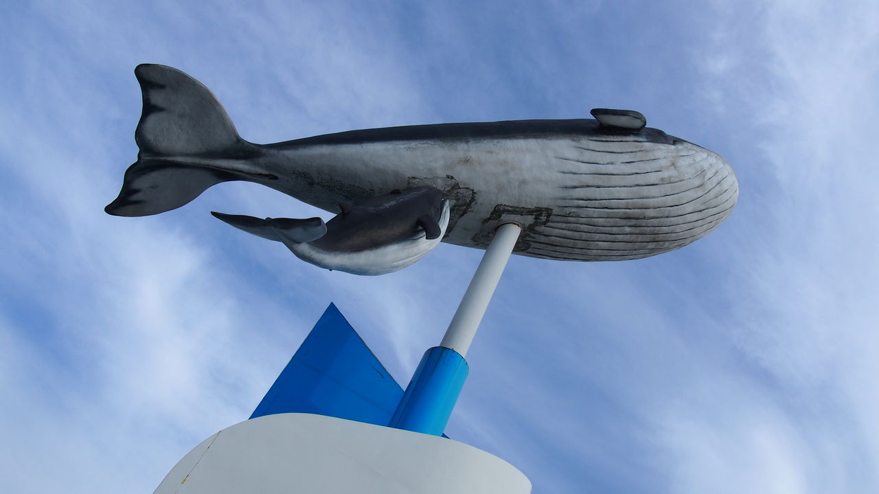 まずは鯨の親子が目印の青海島シーサイドスクエアに行きます。青海島の通地区はかつて沿岸捕鯨の基地として栄えました。