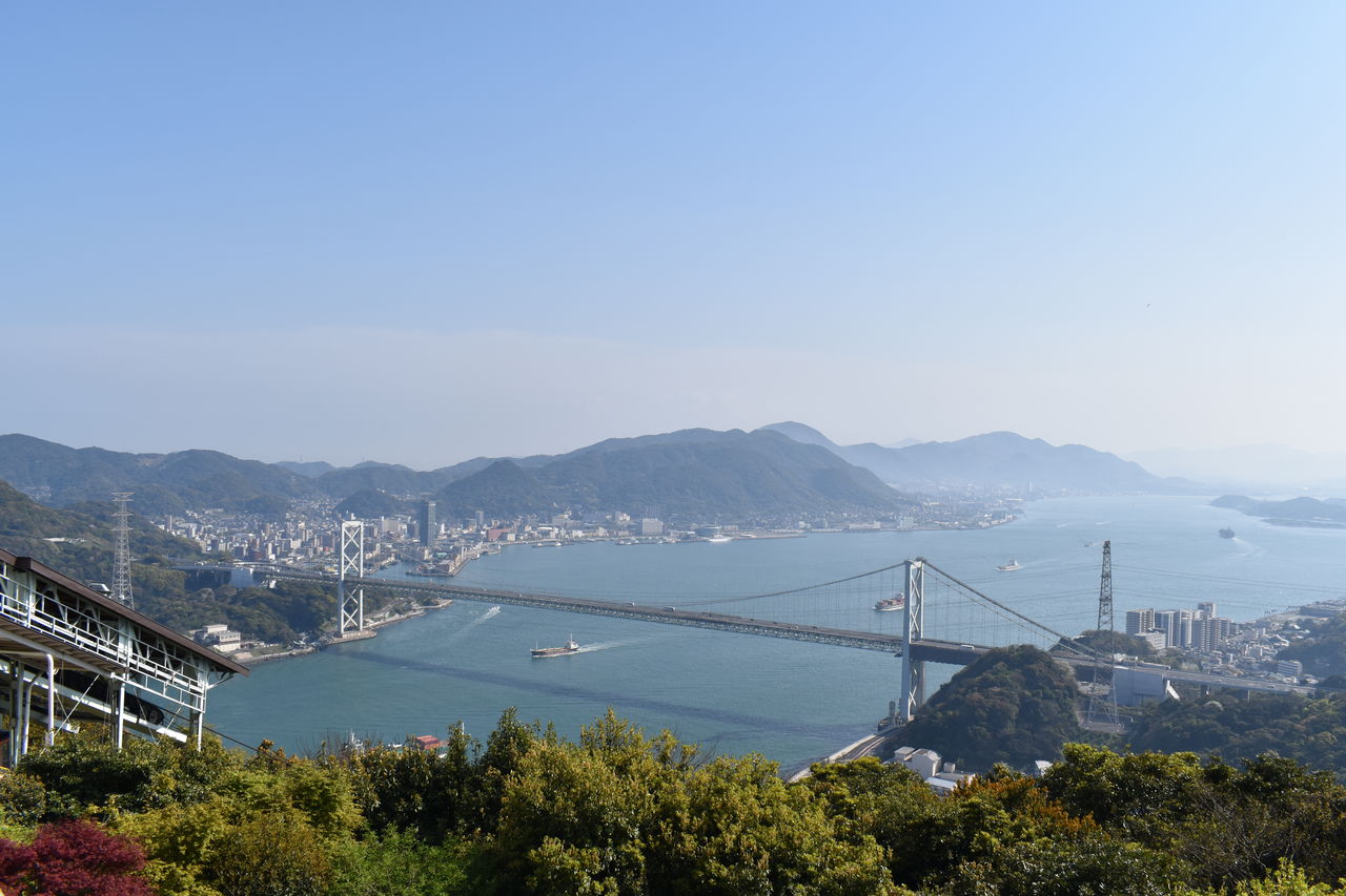 火の山ロープウェイ上駅屋上より、九州と本州を結ぶ関門橋。開通当初は東洋一の長さの橋でした。