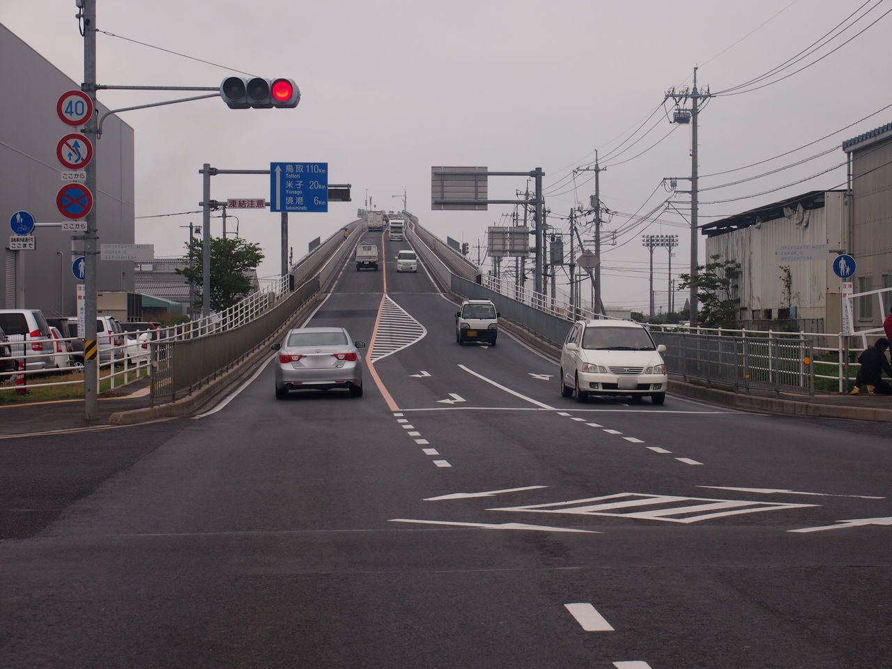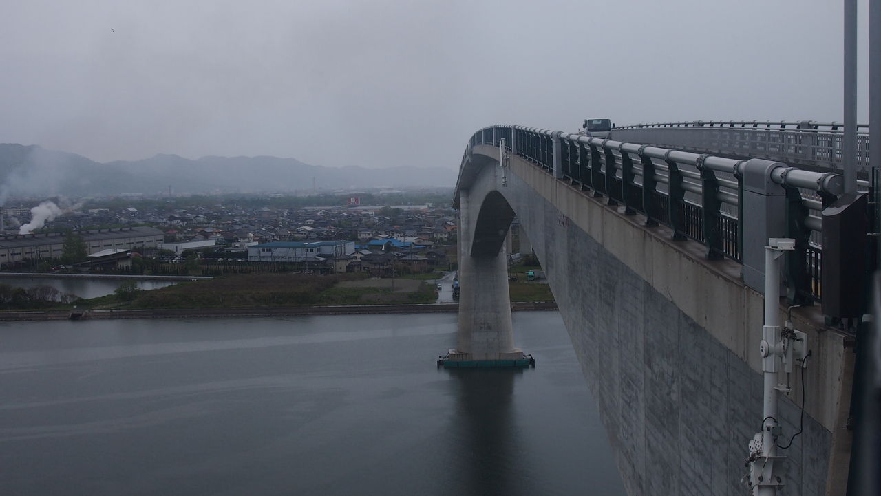 橋の全長は1.7Km。高さは44.7m。勾配は境港側5.1%、大根島側6.1%です。
