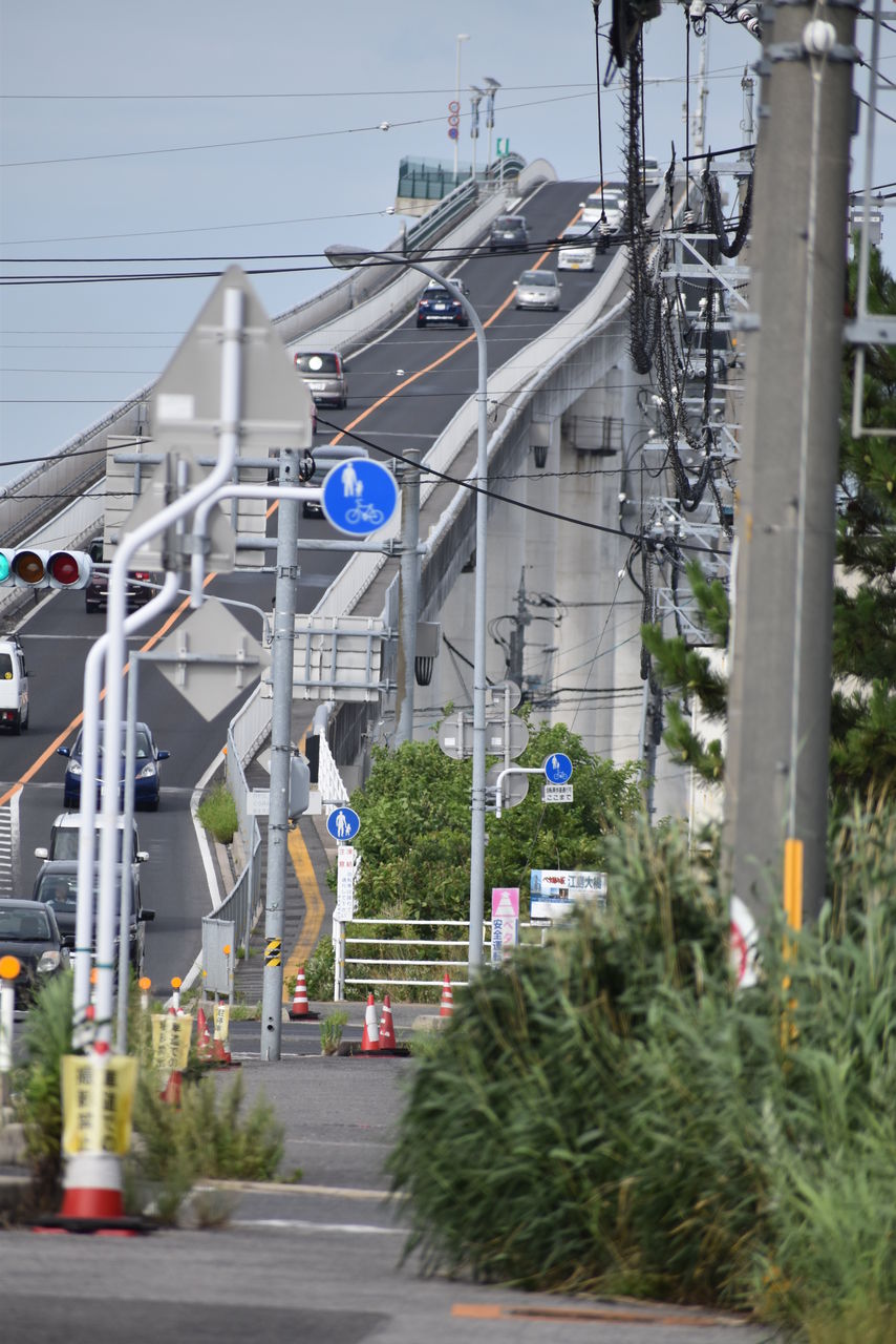 ベタ踏み坂は写真のトリックっぽいですが、江島大橋自体はすごい橋なので一見の価値ありです。遠くからでも見えます。ランドマークとしての側面ありますね。