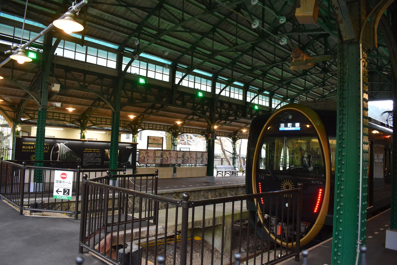 車庫のある修学院駅を通過するとき車庫から見えて、速攻降りたのですが、裏に回ったときはもう奥の方に引っ込んでマシタ…ツイテナイ…今回本当にツイテナイ…。