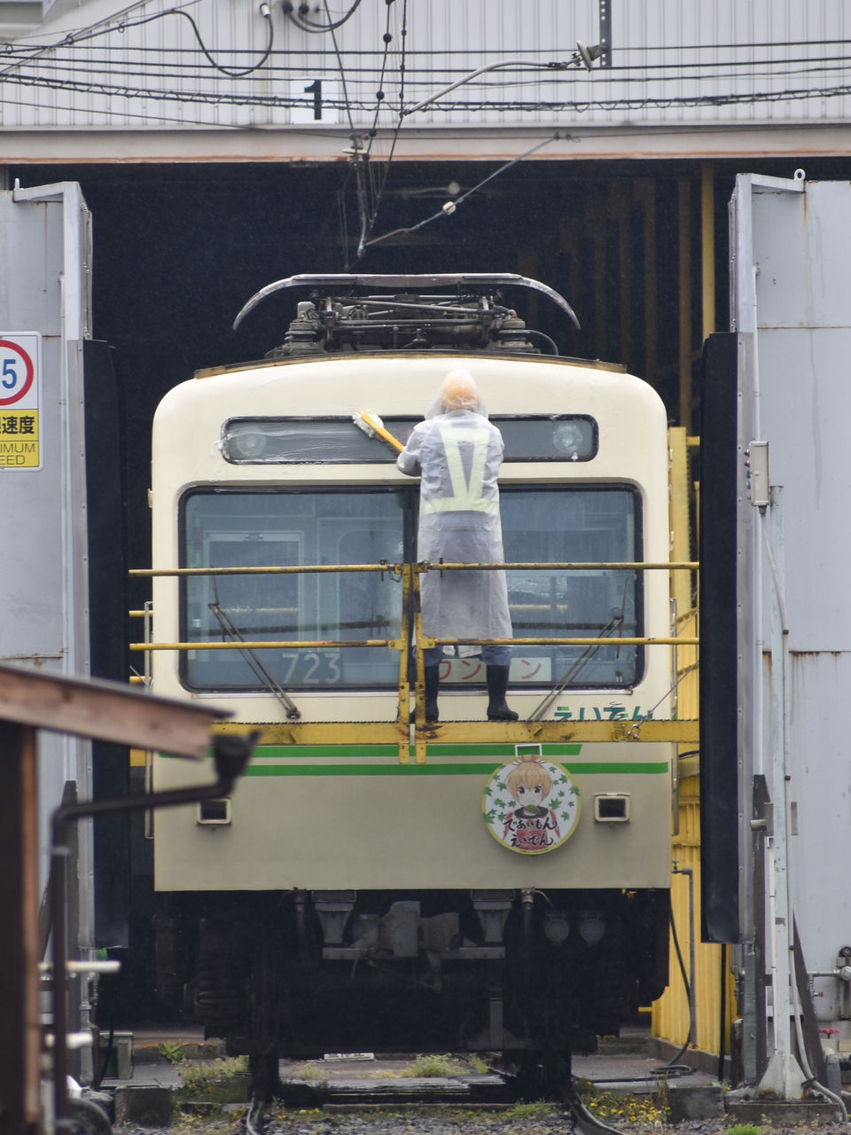 それにしても叡電に乗りに行くときはいつも雨だし、お目当てのラッピングは車庫だし、相性わるいのかしら?