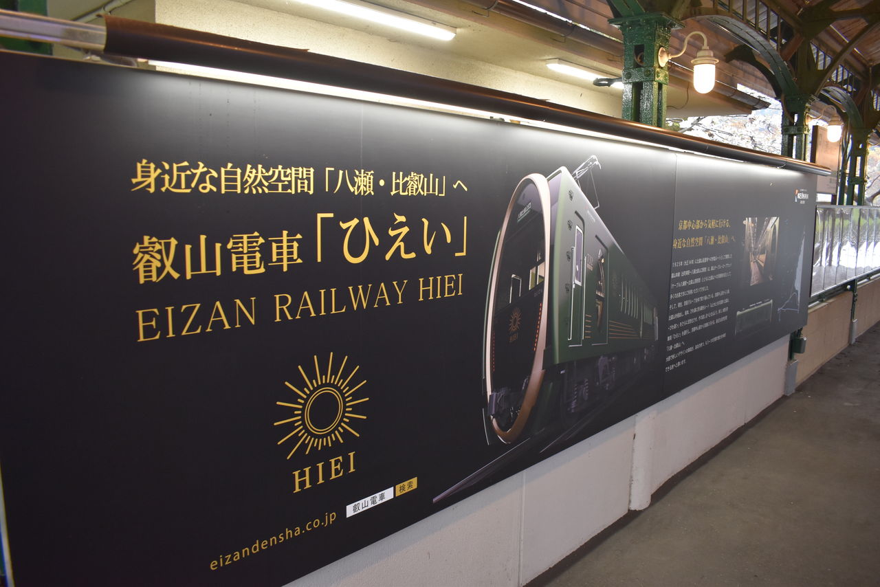先々週京都に行った時、叡山電車が「であいもん」とコラボしてるってことで見に行きました。その時観光列車「ひえい」に乗れたので一緒にレポートします。