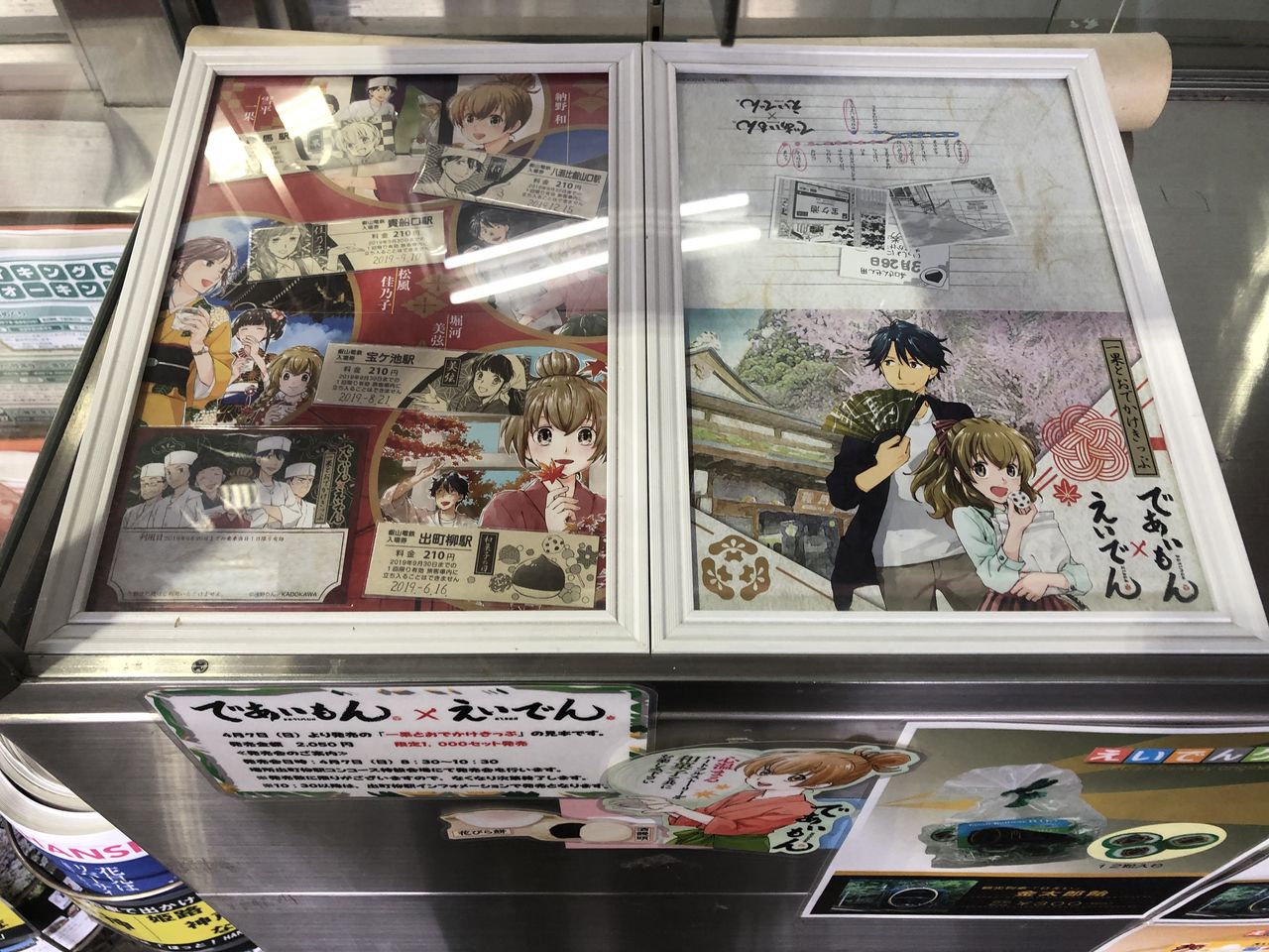 5つの駅に掲出されているコラボポスター。これは出町柳駅。