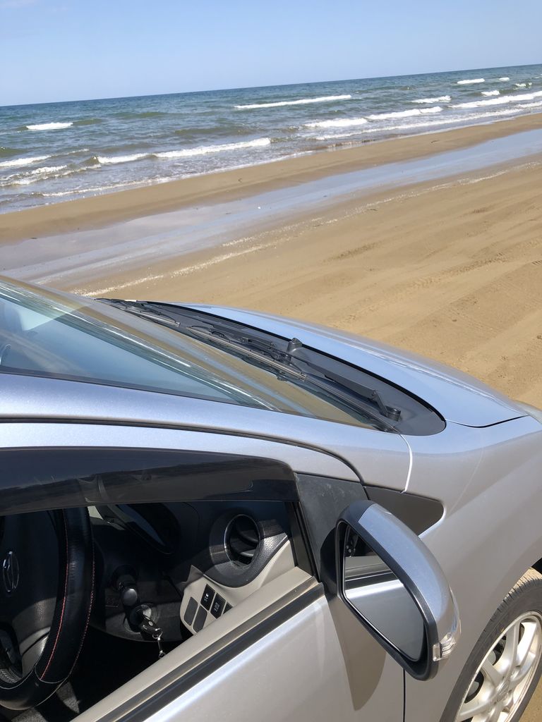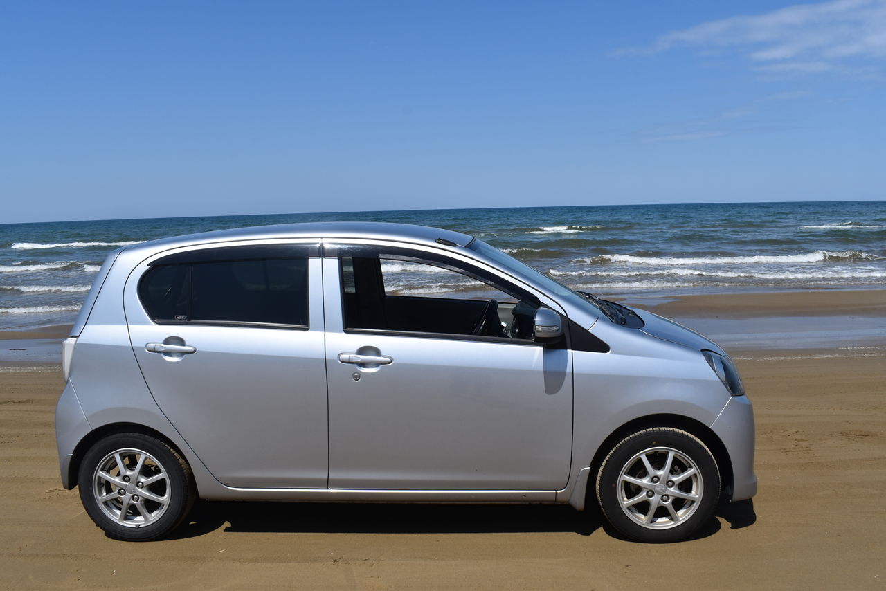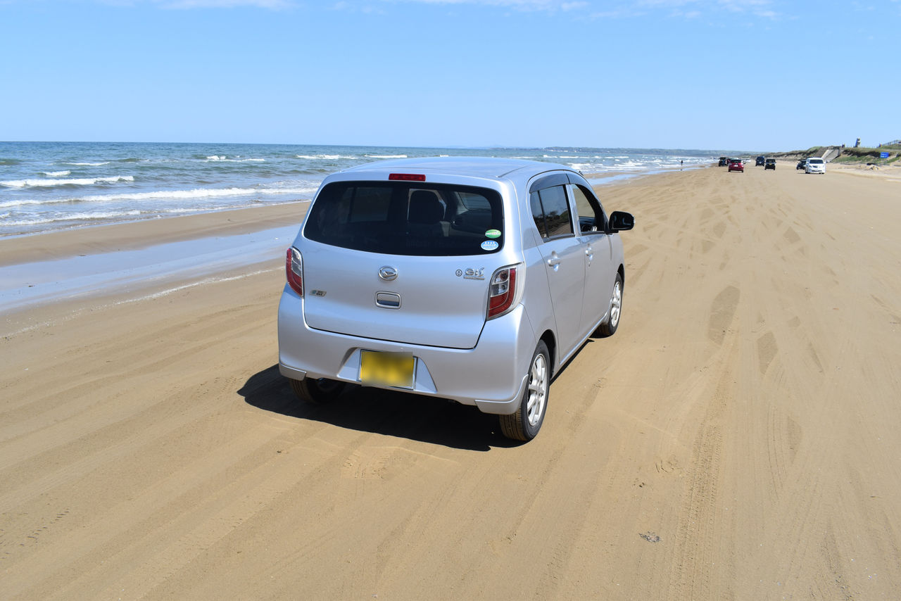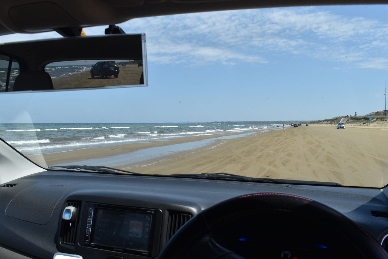 フォロワーさんから海沿いを走れる海岸があると聞いた時、海の側にアスファルトの道があるんだって勘違いしてました。まさか砂の上を走れるとは。