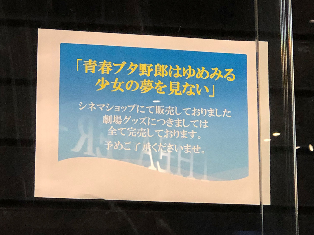 今日、仕事終わってから、博多駅9階のT・ジョイ博多で「青春ブタ野郎はゆめみる少女の夢を見ない」を観てきました。
