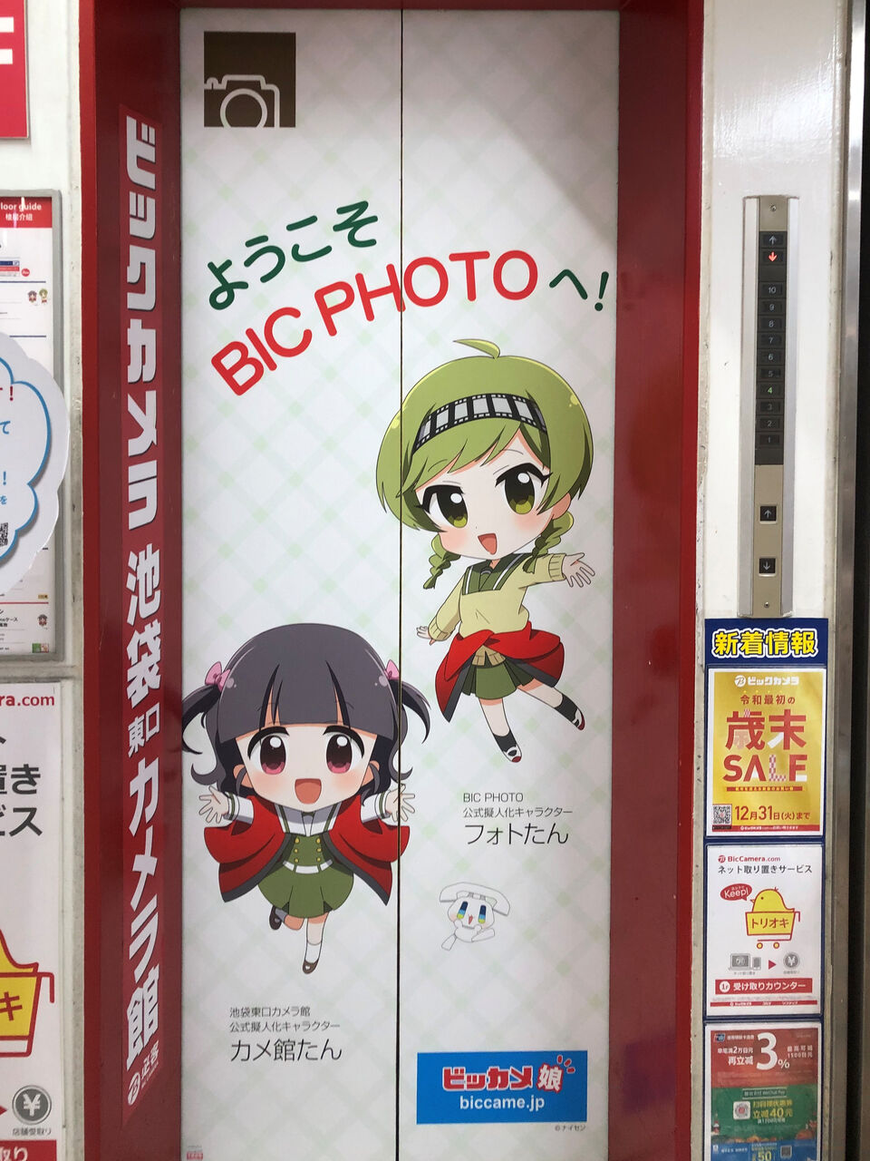 フォトたんのいた横のエレベーターにはカメ館たんとフォトたんの姿が。