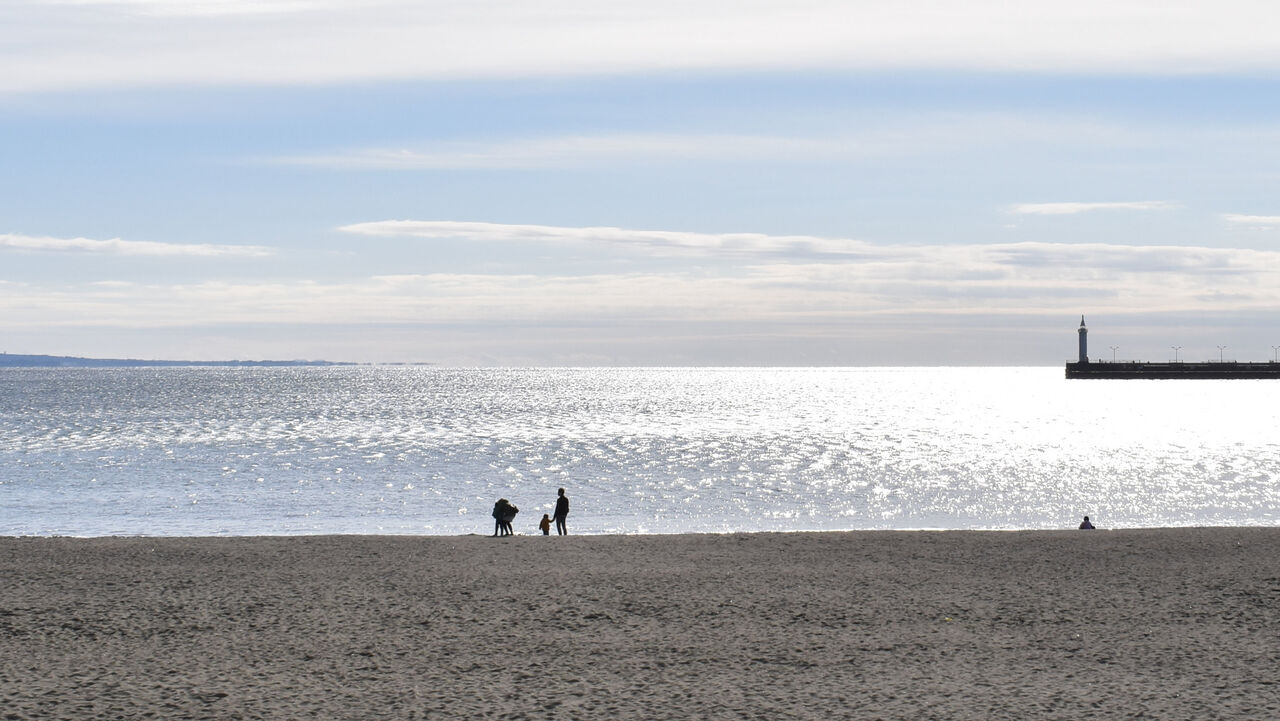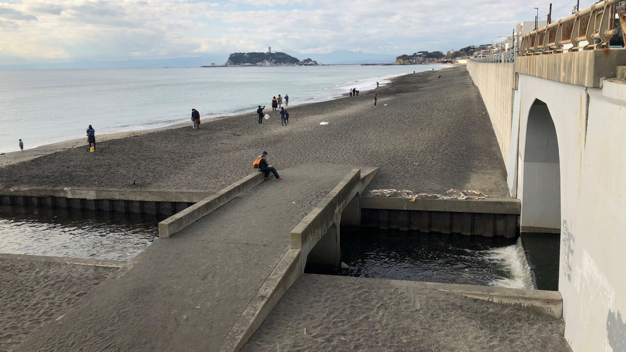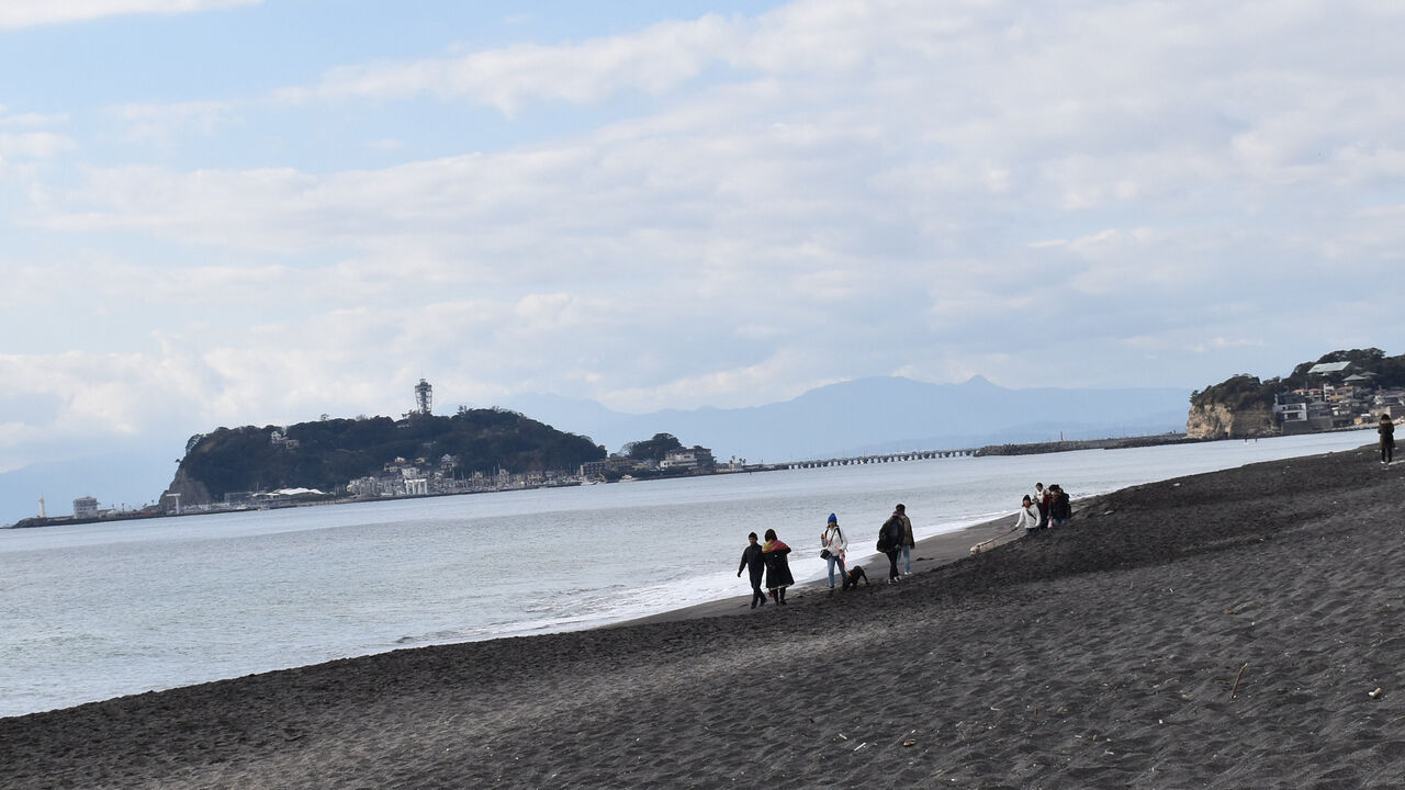 七里ヶ浜。咲太たちの通う峰ヶ原高校のすぐそば。遠くに江ノ島を望む海岸で日本の渚百選にも選ばれてます。
