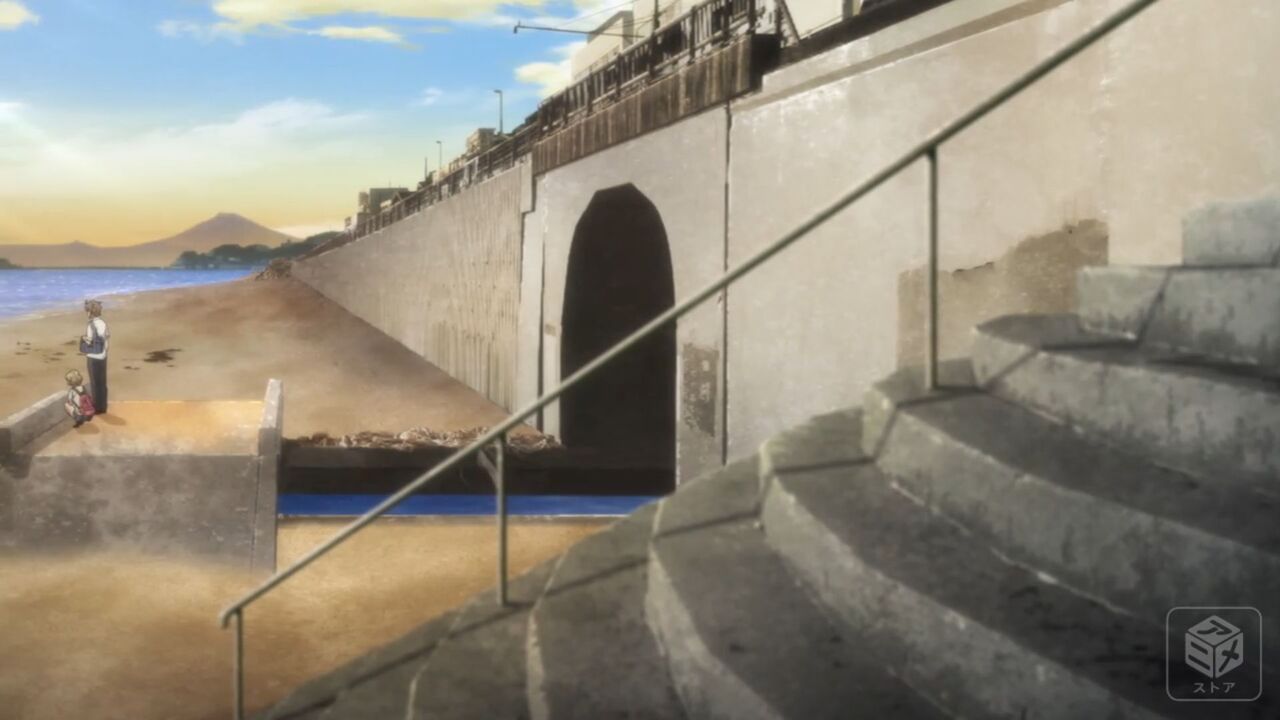 第5話。階段の上から江ノ島方向を望むカットその2。