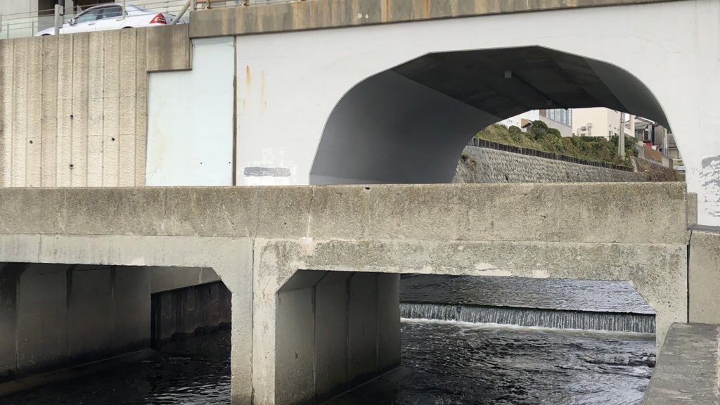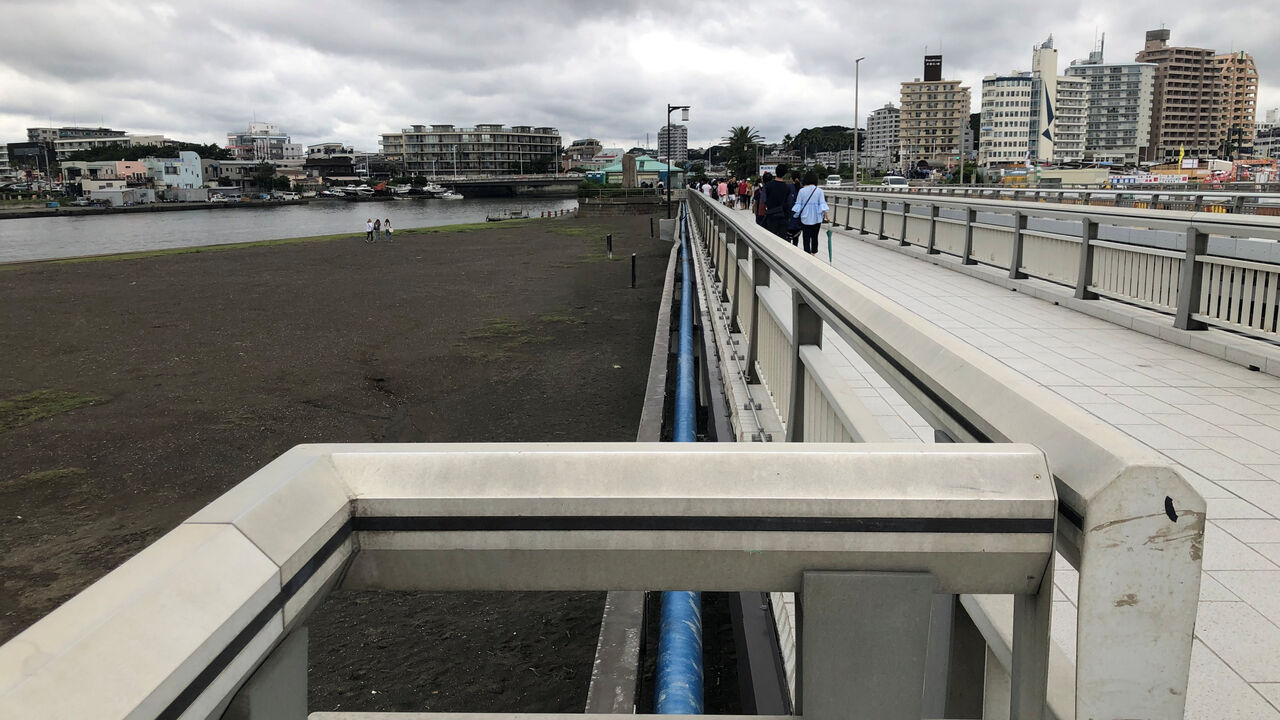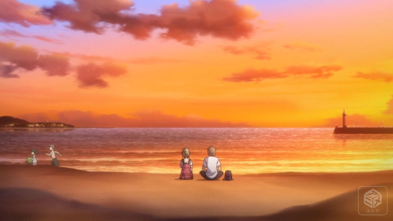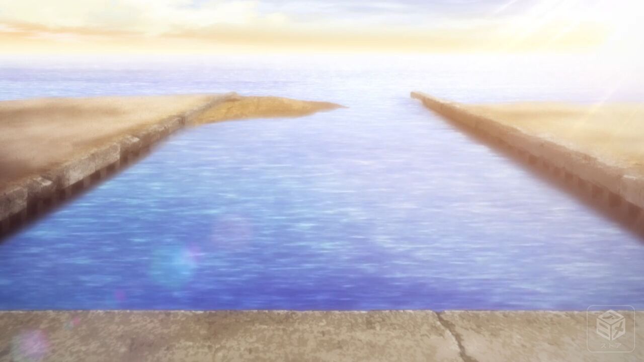 第5話より。橋の上から行合川の河口と海を望む感じで。