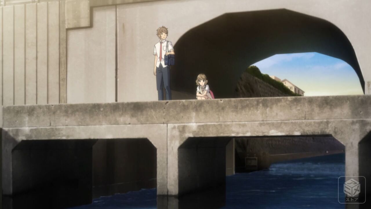 第5話より。カットに合わせると川の中に入らなきゃ無理なので…。