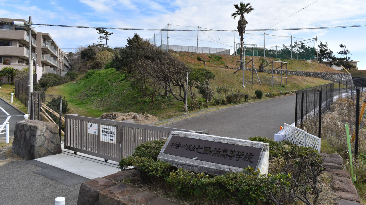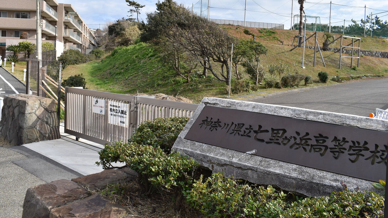 七里ガ浜高校です。咲太たちの通う「峰ヶ原高校」のモデルになった高校です。すぐ横が湘南の海で教室から海を眺められるという羨ましい高校ですね。