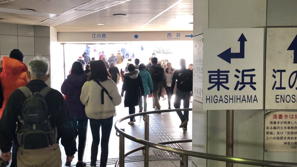 現在、「片瀬江の島駅」は改装工事をやっていて、見ることができません。運良く最初の遠征のときは工事前なので写真を撮ることができました。