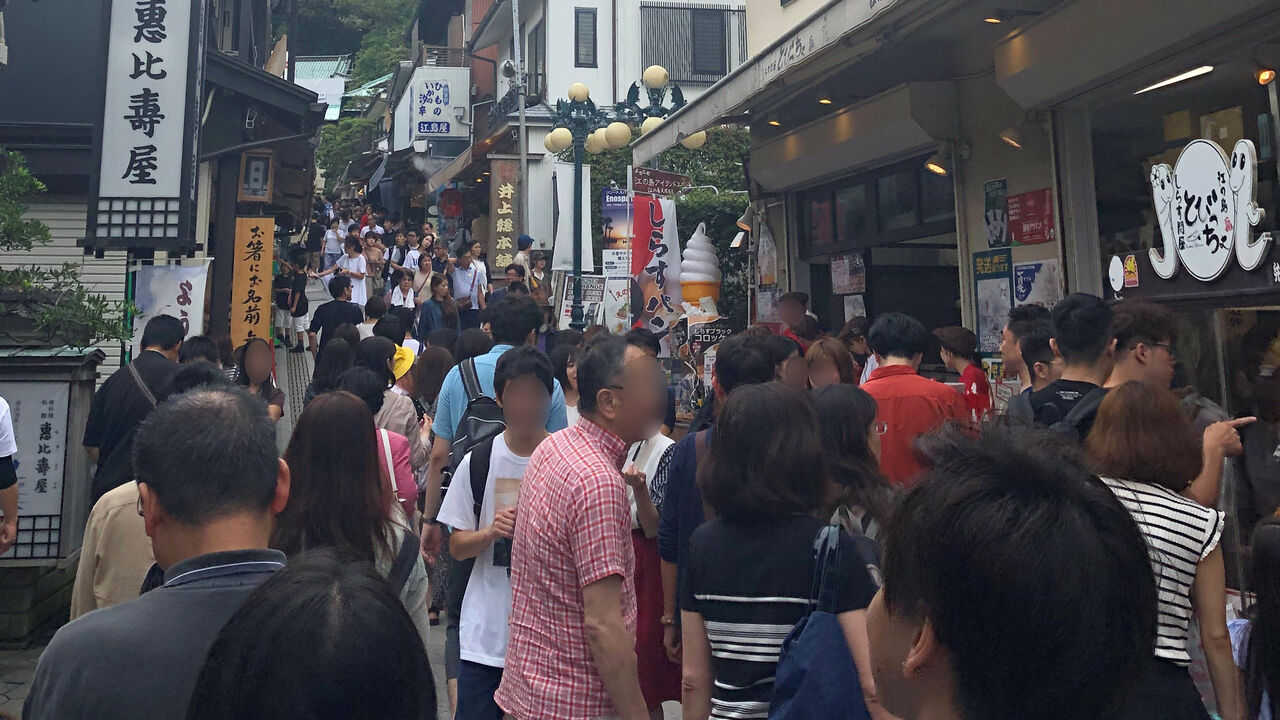 江島神社の麓にある参道です。参拝客、観光客で賑わってますね。