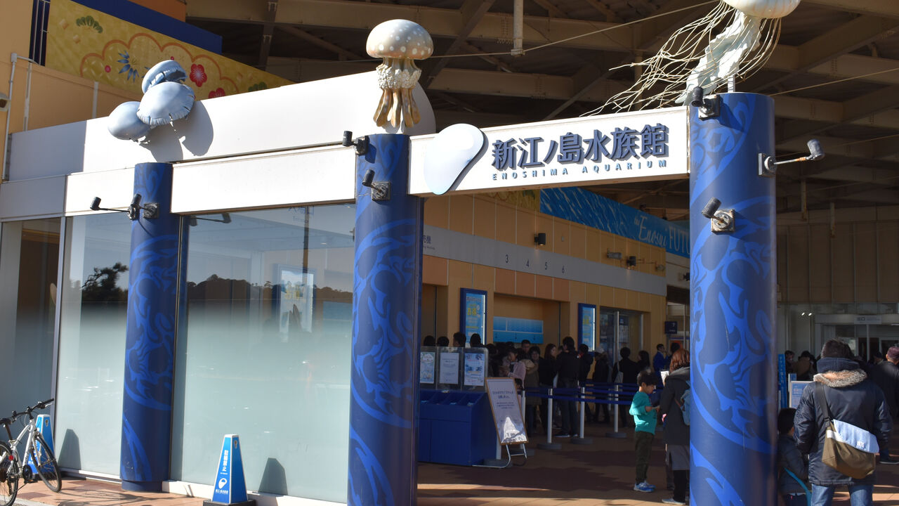 江ノ島海岸にある「新江ノ島水族館」です。江ノ島に渡る弁天橋手前の片瀬交差点から西へすこし行った場所にあります。
