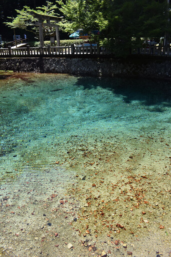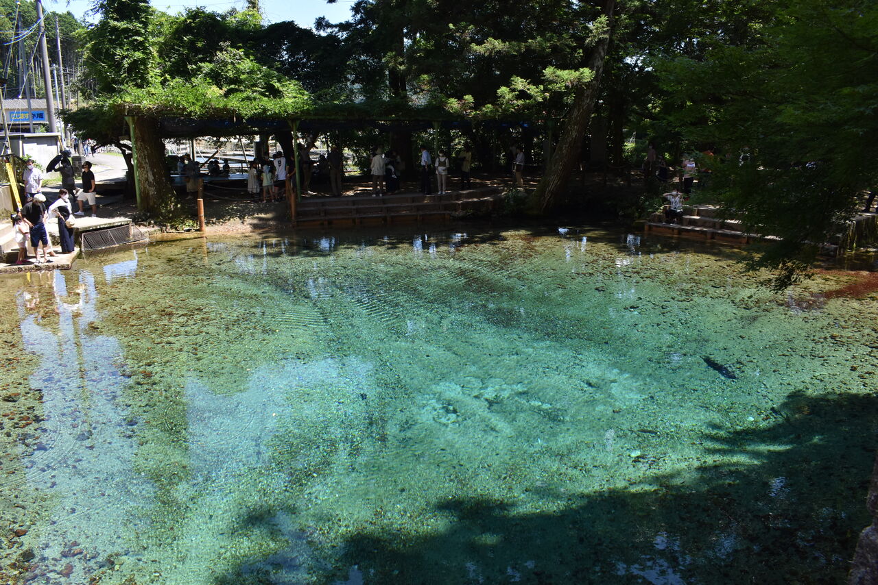 夏の強い日差しを受けて、ミネラル分を含んだ湖底からの湧き水が青く輝きます。