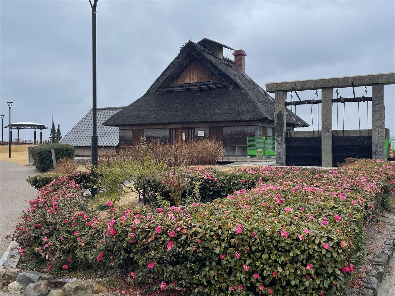 なんか藁葺き屋根が移設(?)されてた。