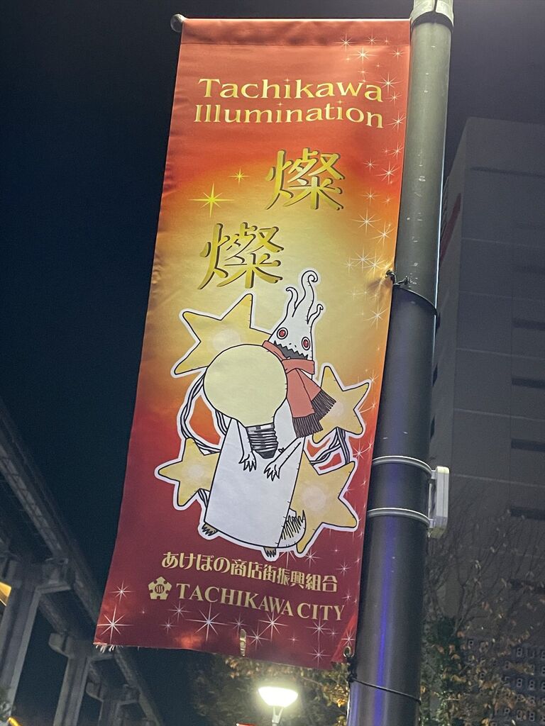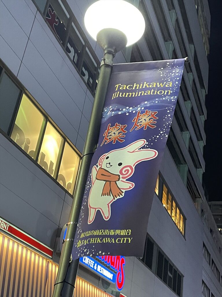荷物を置いて夜の立川へ繰り出します。