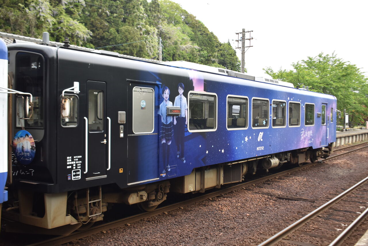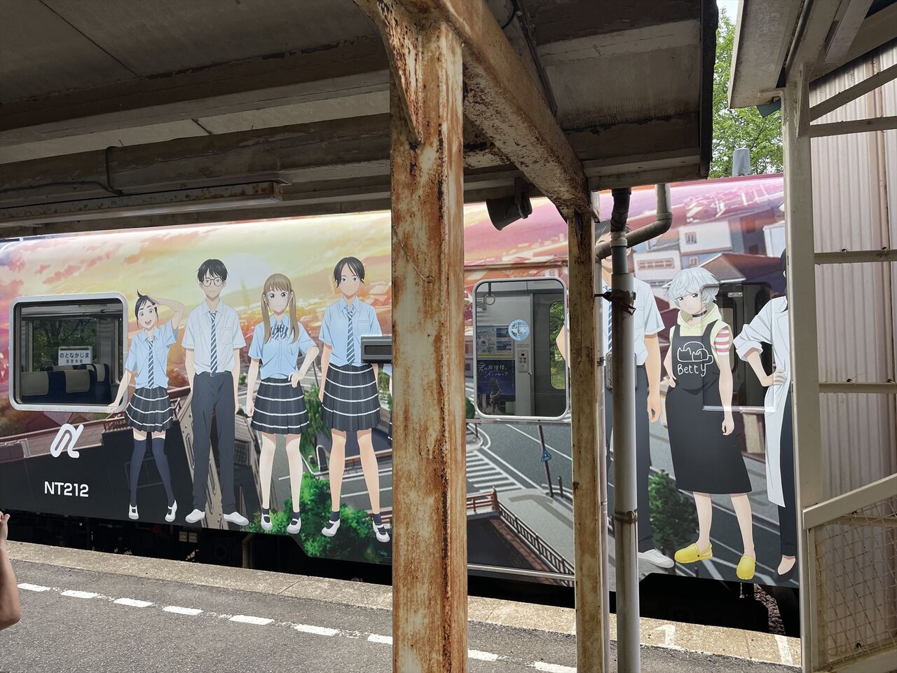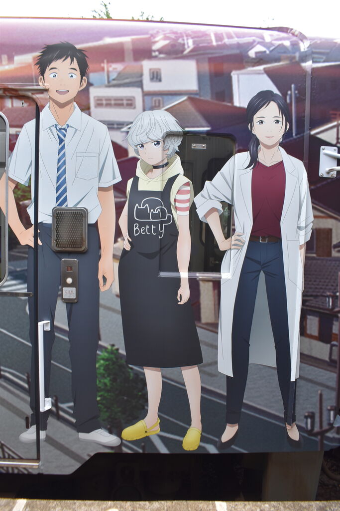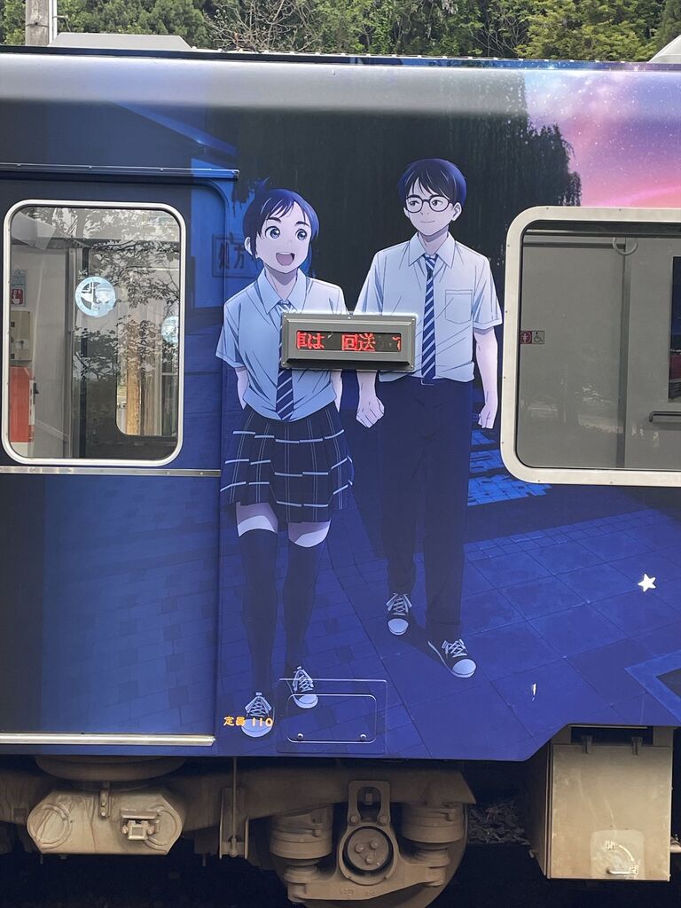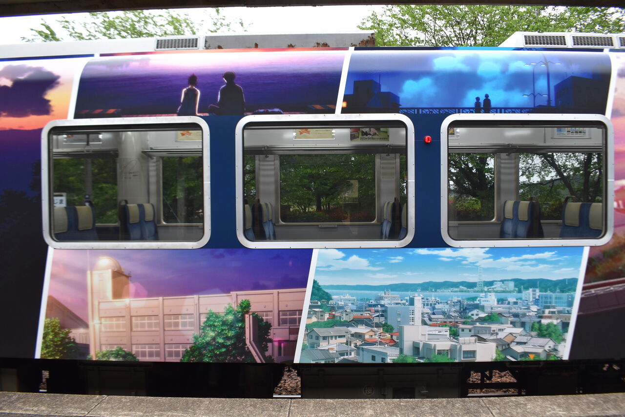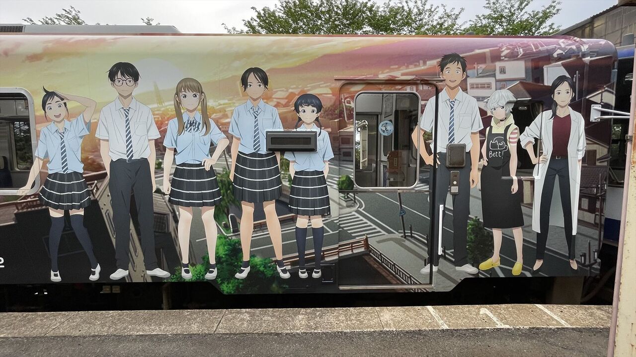 このアニメは知らないですが、綺麗なラッピング車両ですね。