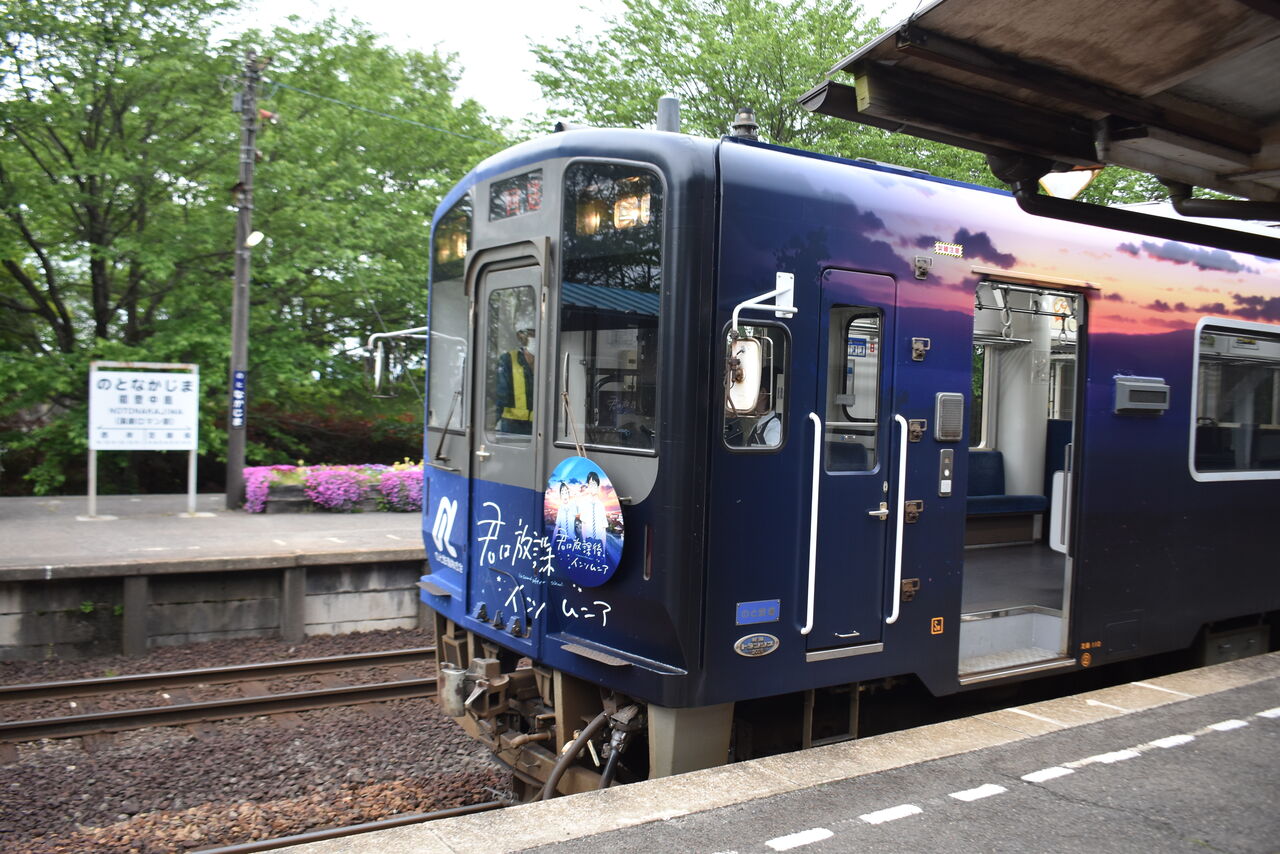 そして「能登中島駅」でラッピング列車が待機してるのを発見。