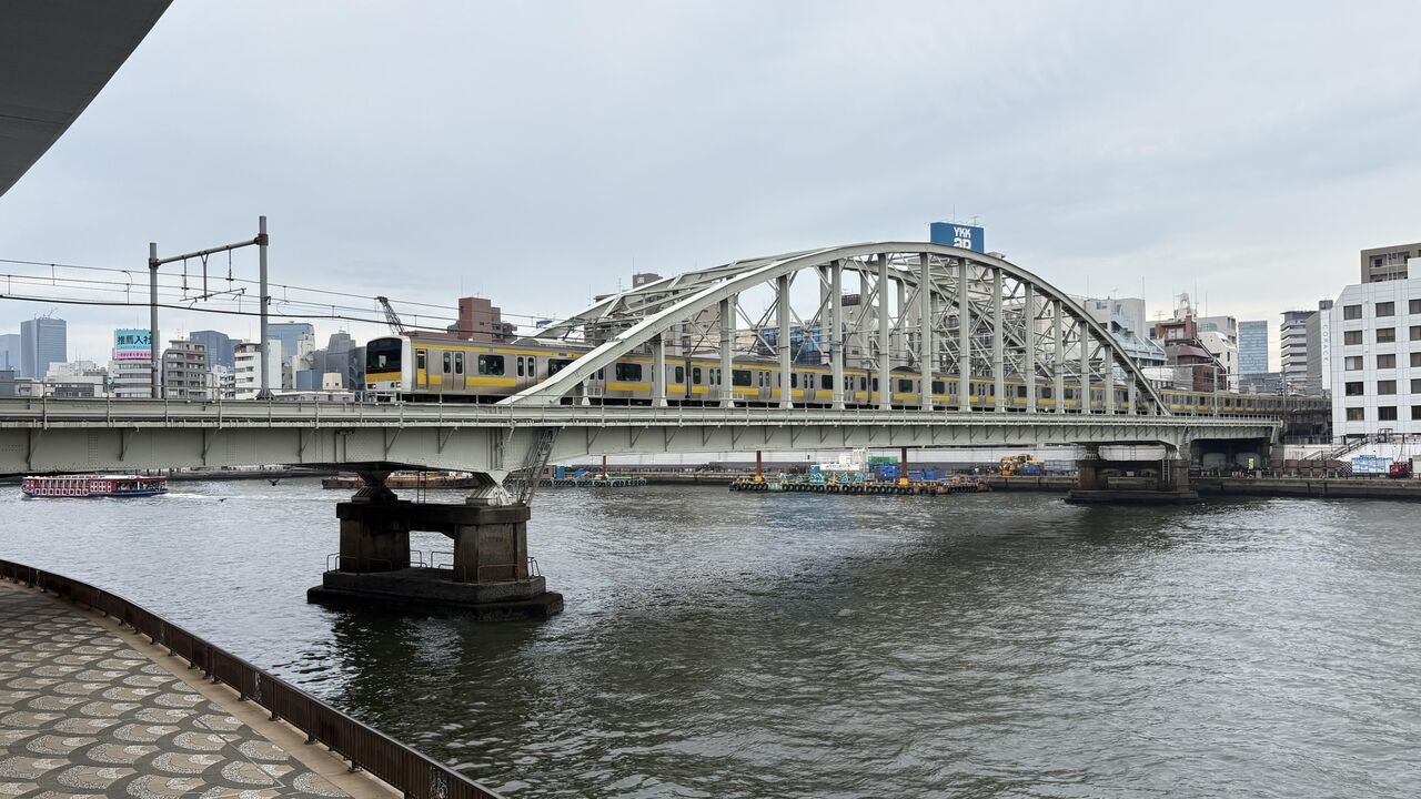 隅田川にかかる総武線隅田川橋梁。