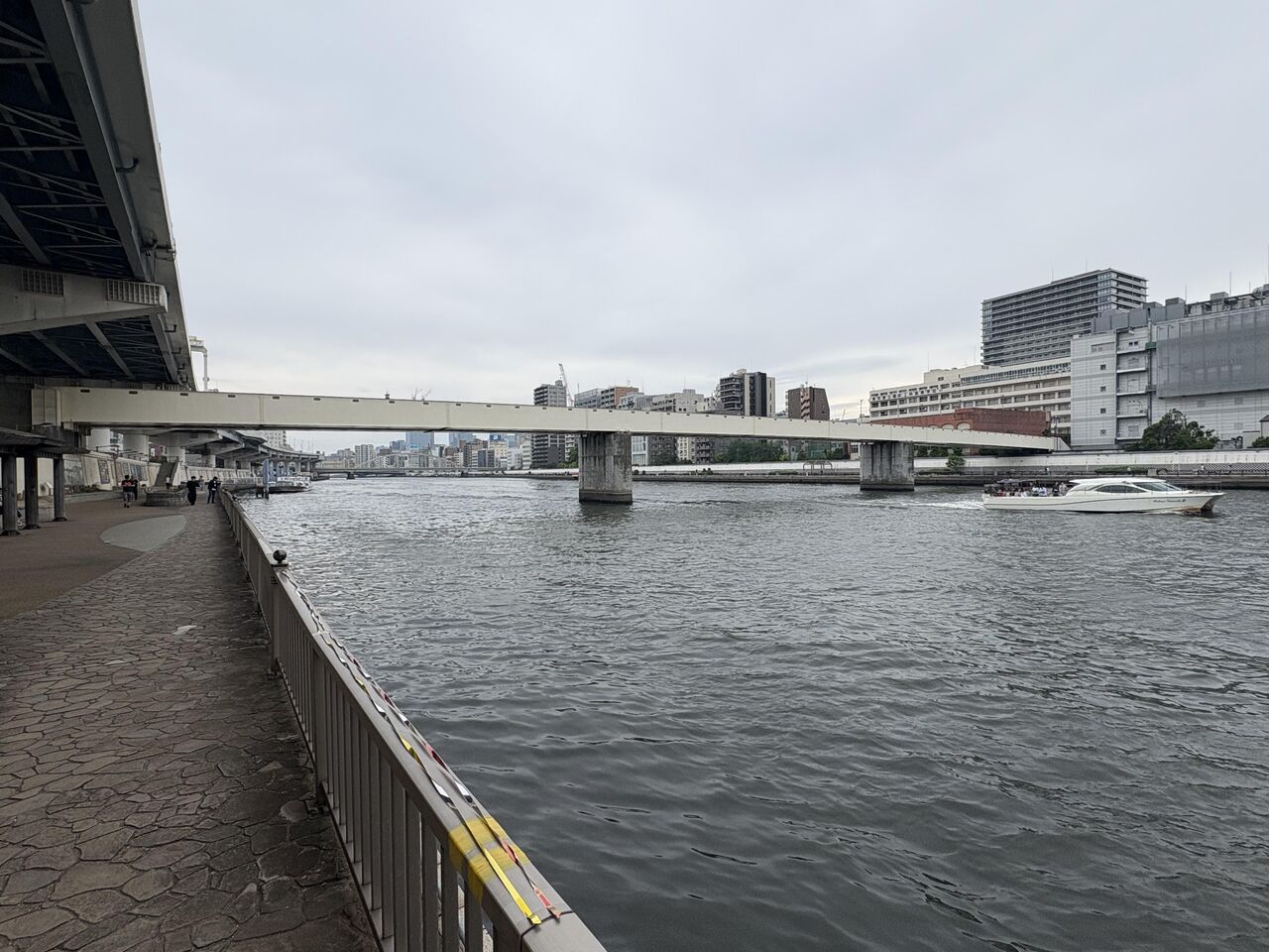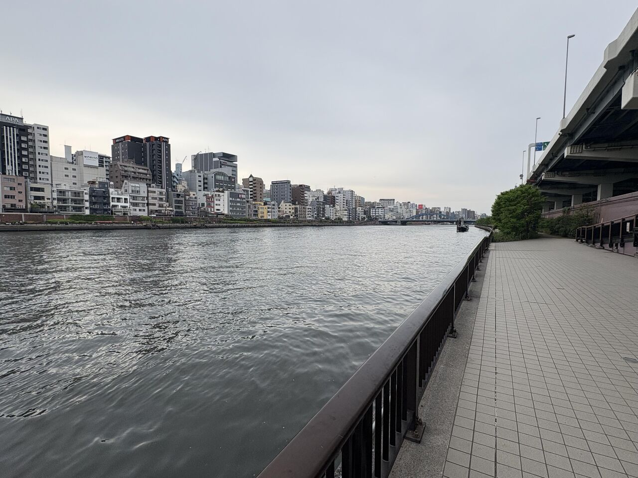 隅田川沿いに伸びる遊歩道。